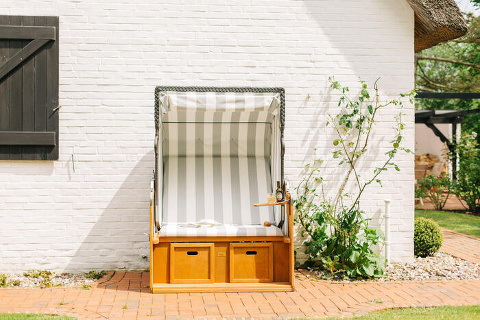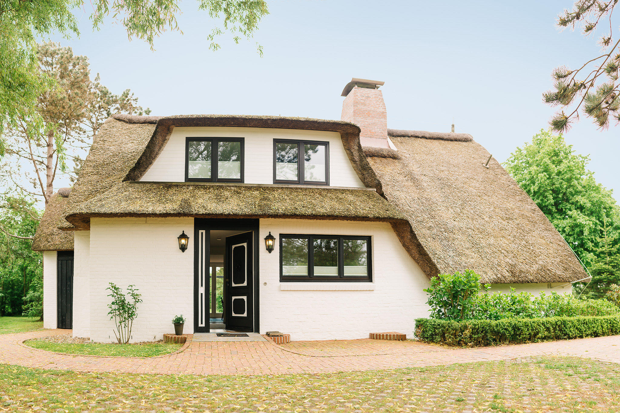 Unser wunderschönes und freistehendes Reetdachhaus befindet sich in Nordfriesland und liegt in unmittelbarer Nähe zum Strand. Alle Räume sind hell und haben einen sehr freundlichen und offenen Wohncharakter. Die oberen Zimmer sind eher klein und haben Dachschrägen. Sie würden sich aber gut als Garderoben eignen, da oben auch ein großzügiges Tageslichtbad ist. Der große Wohn- und Essbereich hat zwei unterschiedliche Deckenhöhen. Der Essbereich ist niedrig (2,20 m) und der Wohnbereich geht nach oben offen ins Dach. Die sehr ruhige Wohngegend, etwas nördlich des Ortskerns, sorgt für nur wenig Hintergrundgeräusche. Parkmöglichkeiten und Stellplätze bestehen auf dem Grundstück bzw. unter einem Carport für 4 PKWs oder 2 Produktionsfahrzeuge wie Vans oder RV und einen Ladeanschluss für Elektrofahrzeuge. St. Peter-Ording in Schleswig-Holstein verfügt über einen Flugplatz und eine gute Verkehrsanbindung durch die Bundesstraße B202, die die Location zur A1 anbindet.