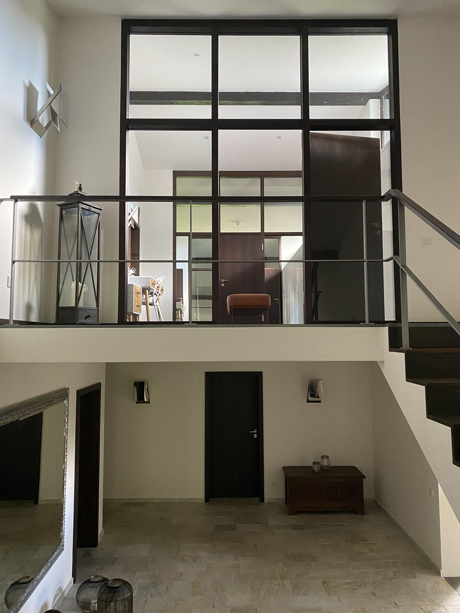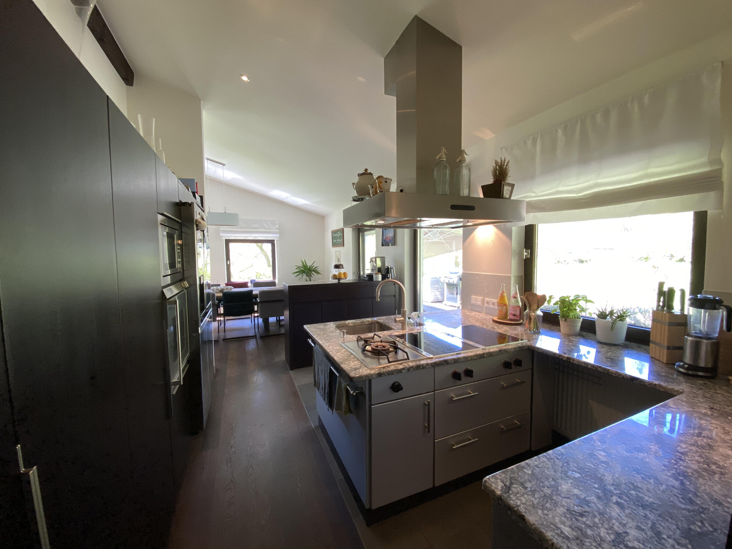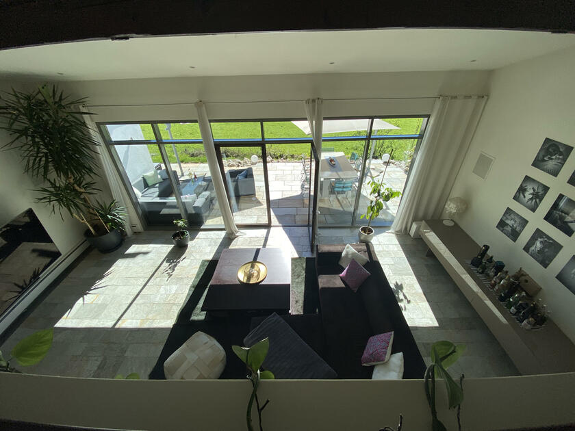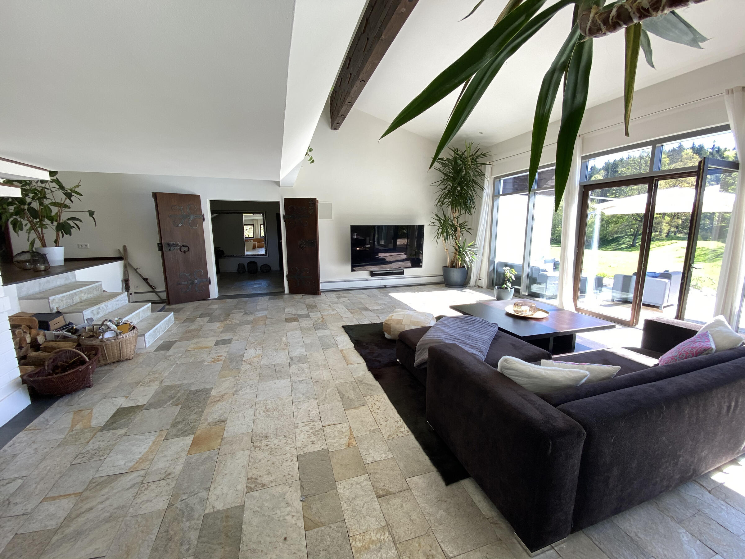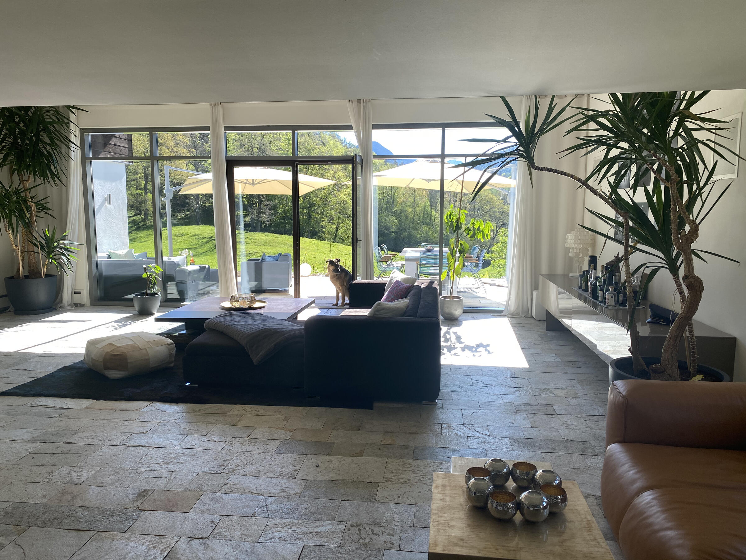 Am Fuße der Hochplatte im idyllischen Chiemgau liegt mein hübsches Hanghaus. Das Haus wurde im Jahr 1976 als Architektenhaus gebaut und im Jahr 2008 komplett und aufwendig renoviert. Der Wohnraum ist sehr offen gestaltet mit hohen Räumen, hochwertigen Möbeln und vielen Fensterflächen. Dadurch ist es im Wohnbereich mit Wohnzimmer, Küche, Esszimmer und Galerie sehr hell und lichtdurchflutet. Von der Galerie aus, kann man im Winter, wenn die Bäume keine Blätter tragen, ebenfalls bis zum wilden Kaiser sehen. Außerdem ist ein offener Kamin vorhanden. Im ersten Obergeschoss befindet sich das Ankleidezimmer mit großem Bad, das Schlafzimmer sowie ein Büro. Im Souterrain befinden sich zwei Gästezimmer sowie ein Gästebad und eine gemütliche Telefonecke.