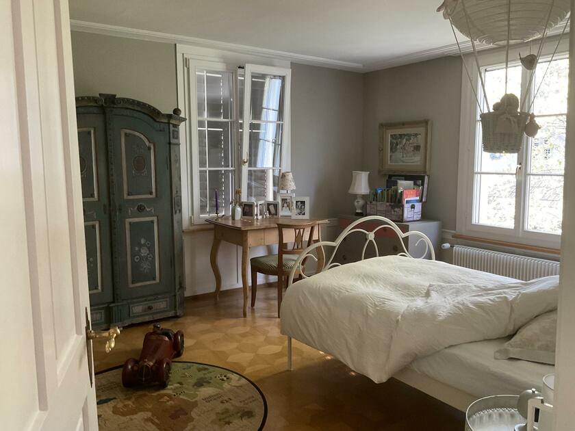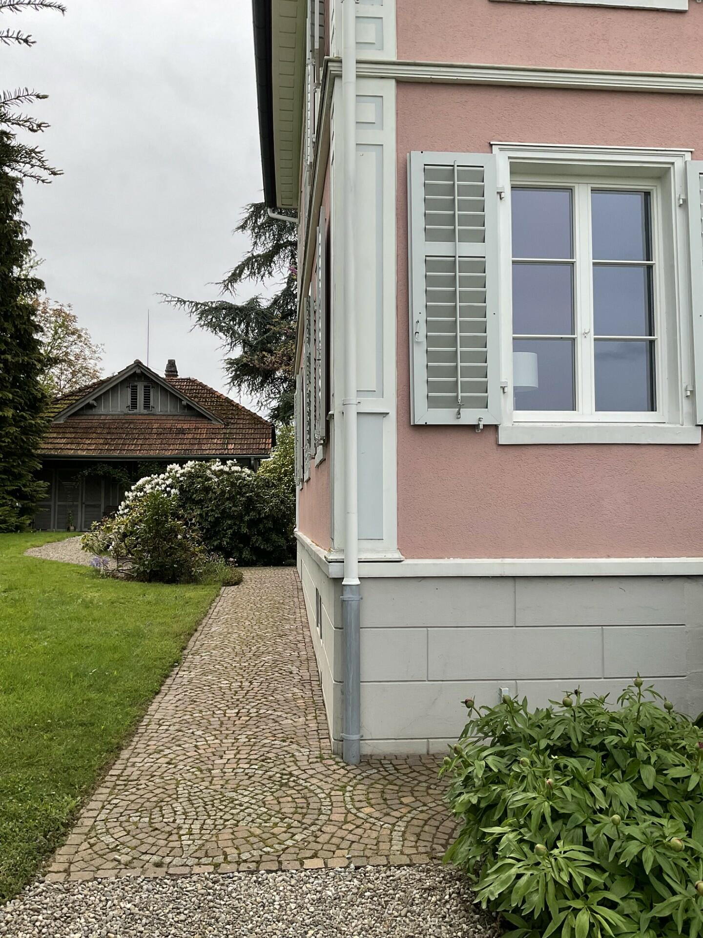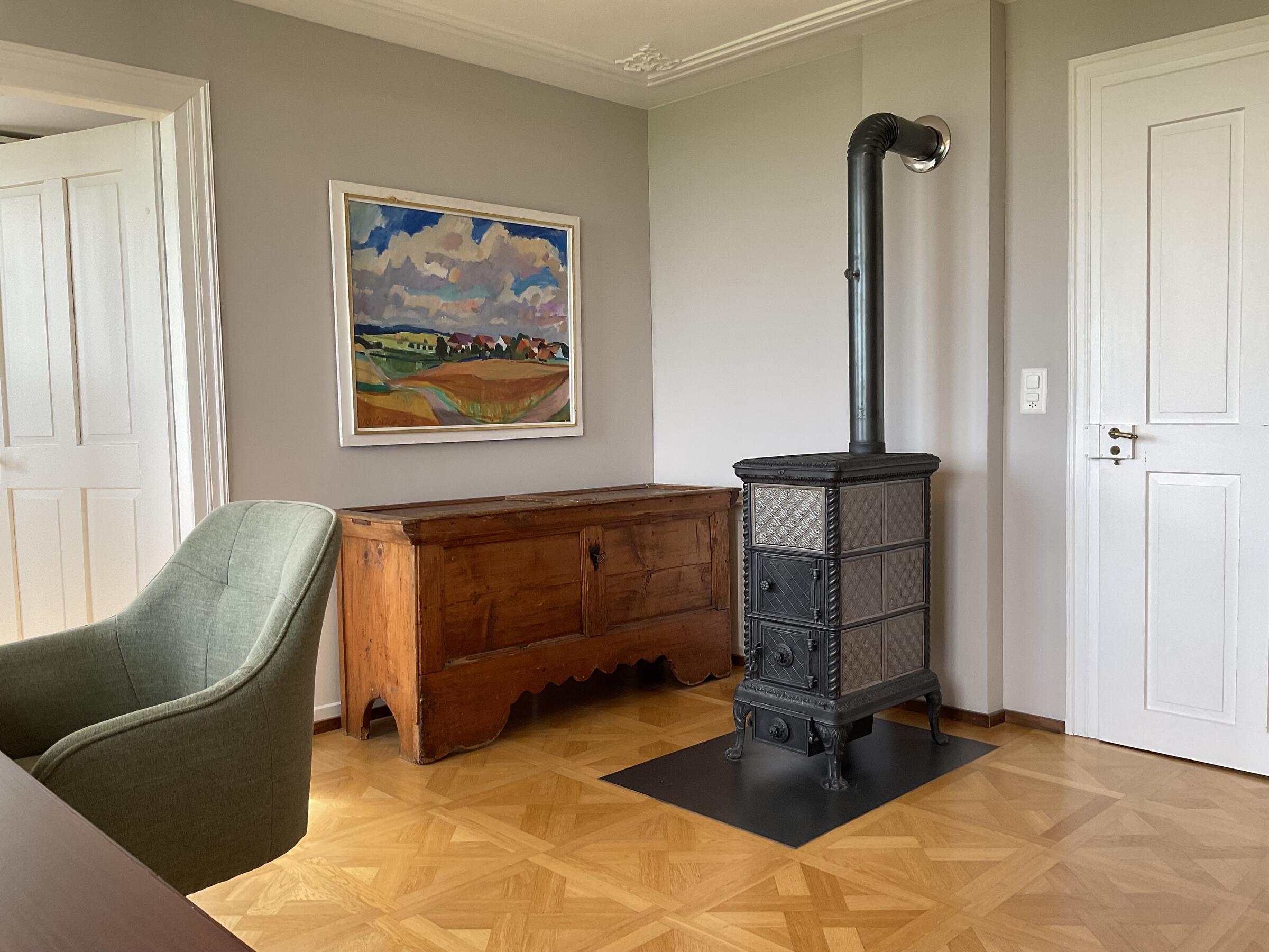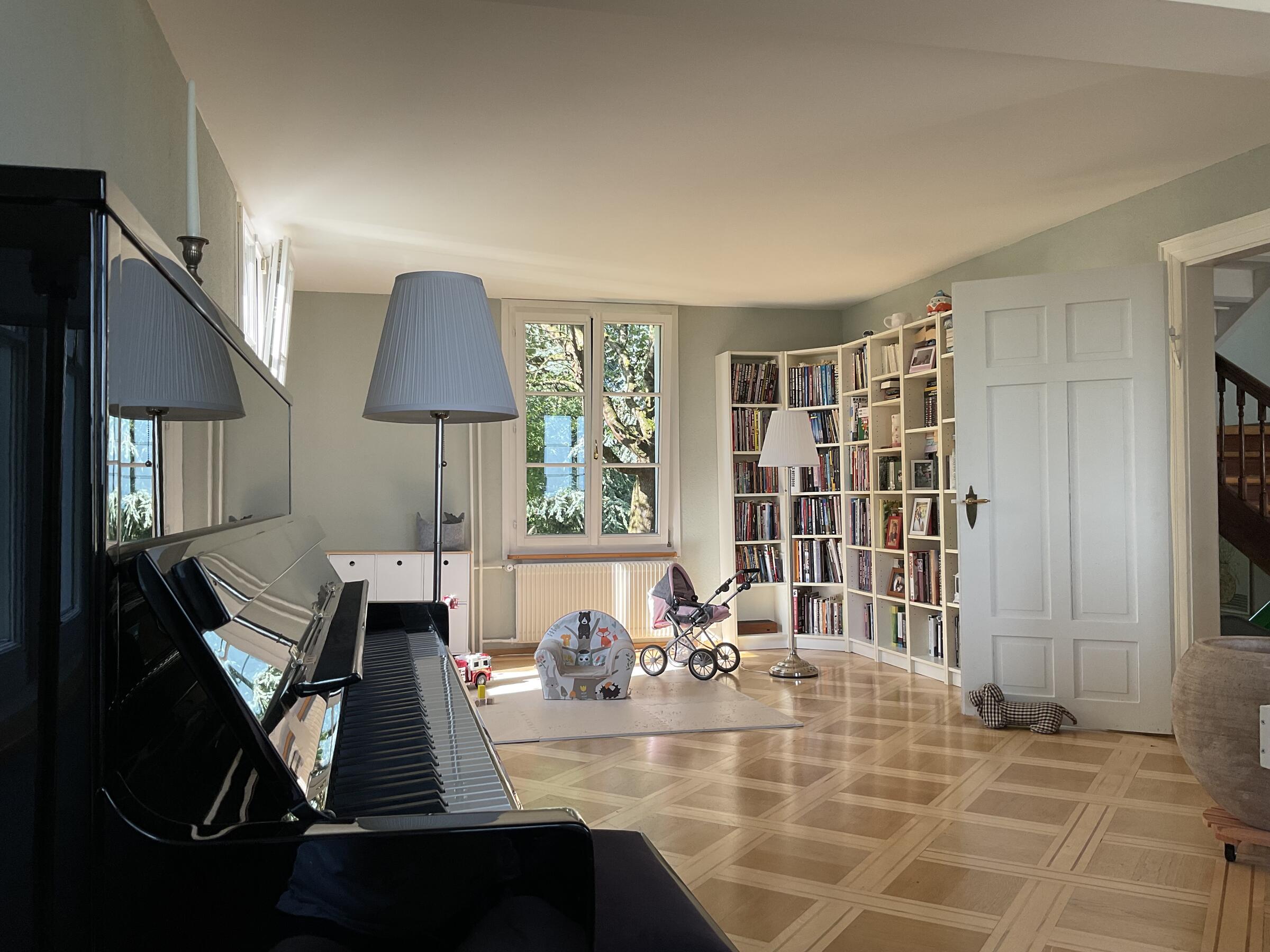 Inmitten eines parkähnlichen Areals steht diese ca. 150 Jahre alte Villa. Der feine zurückhaltende Fassadenschmuck, die lichtdurchfluteten Räume sowie die herrliche Aussicht machen die Villa zu etwas ganz Besonderem. Viele Zimmer des denkmalgeschützten Gebäudes sind mit ganzer oder teilweiser Wandvertäfelung und hochwertigen Parkettböden ausgestattet In fünf Räumen wurde die originale Stuckdecke wieder freigelegt und restauriert. Mit der Inneneinrichtung sowie den gewählten Wandfarben und Beleuchtungselementen wird der Villa als herrschaftliches Wohnhaus Rechnung getragen. Das Haus sowie die Räume dürfen nach Absprache für Produktionen umgestaltet und ummöbliert werden. Sämtliche Fenster sind mit Fensterbalken verdunkelbar. Auf dem Grundstück befindet sich eine Remise aus dem Jahr 1912. Auf dem Areal stehen 4 Pkw-Parkplätze zur Verfügung. In näherer Umgebung sind nochmals Abstellplätze für Pkw vorhanden.