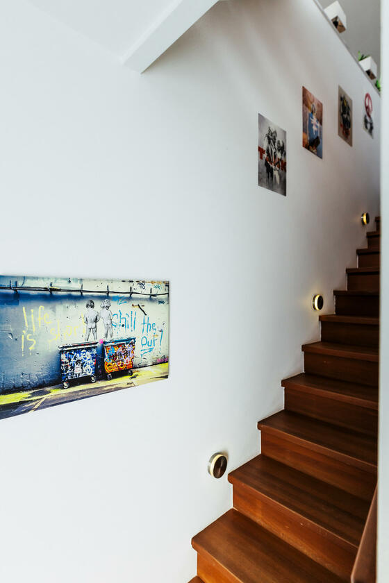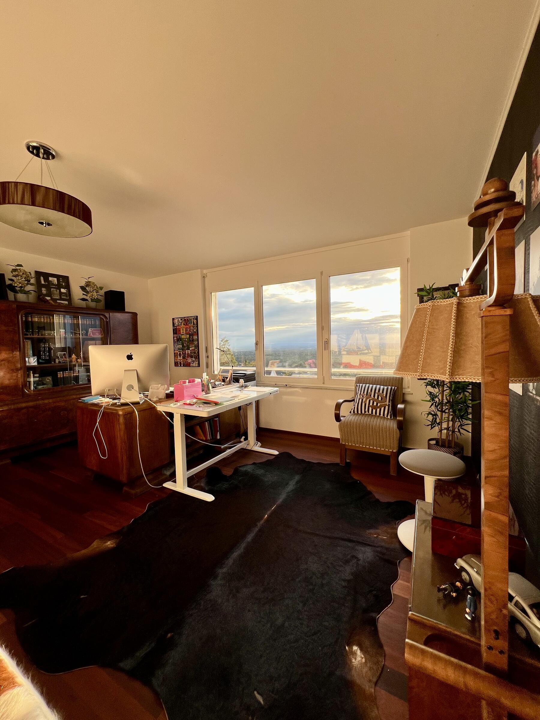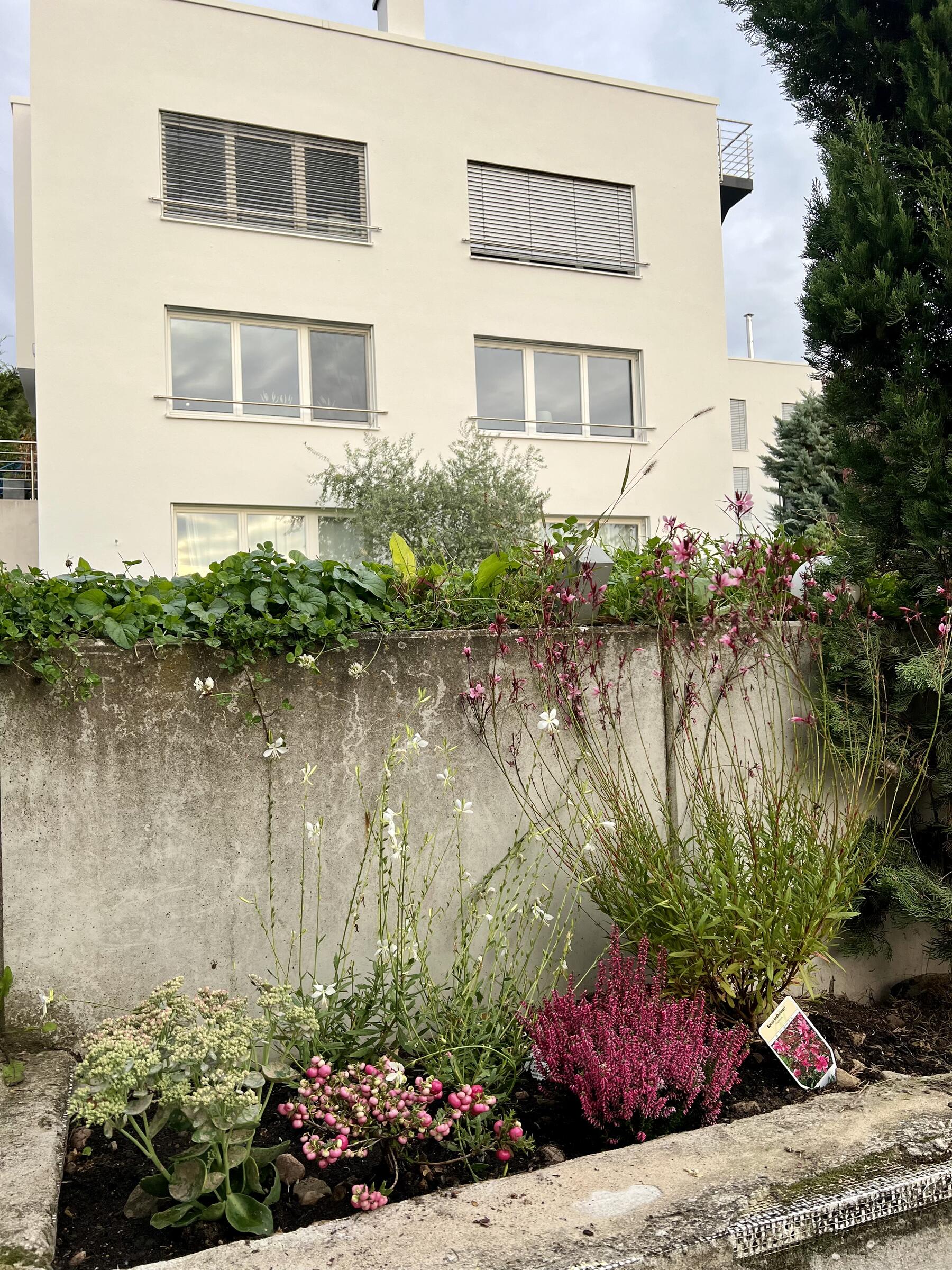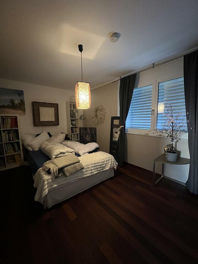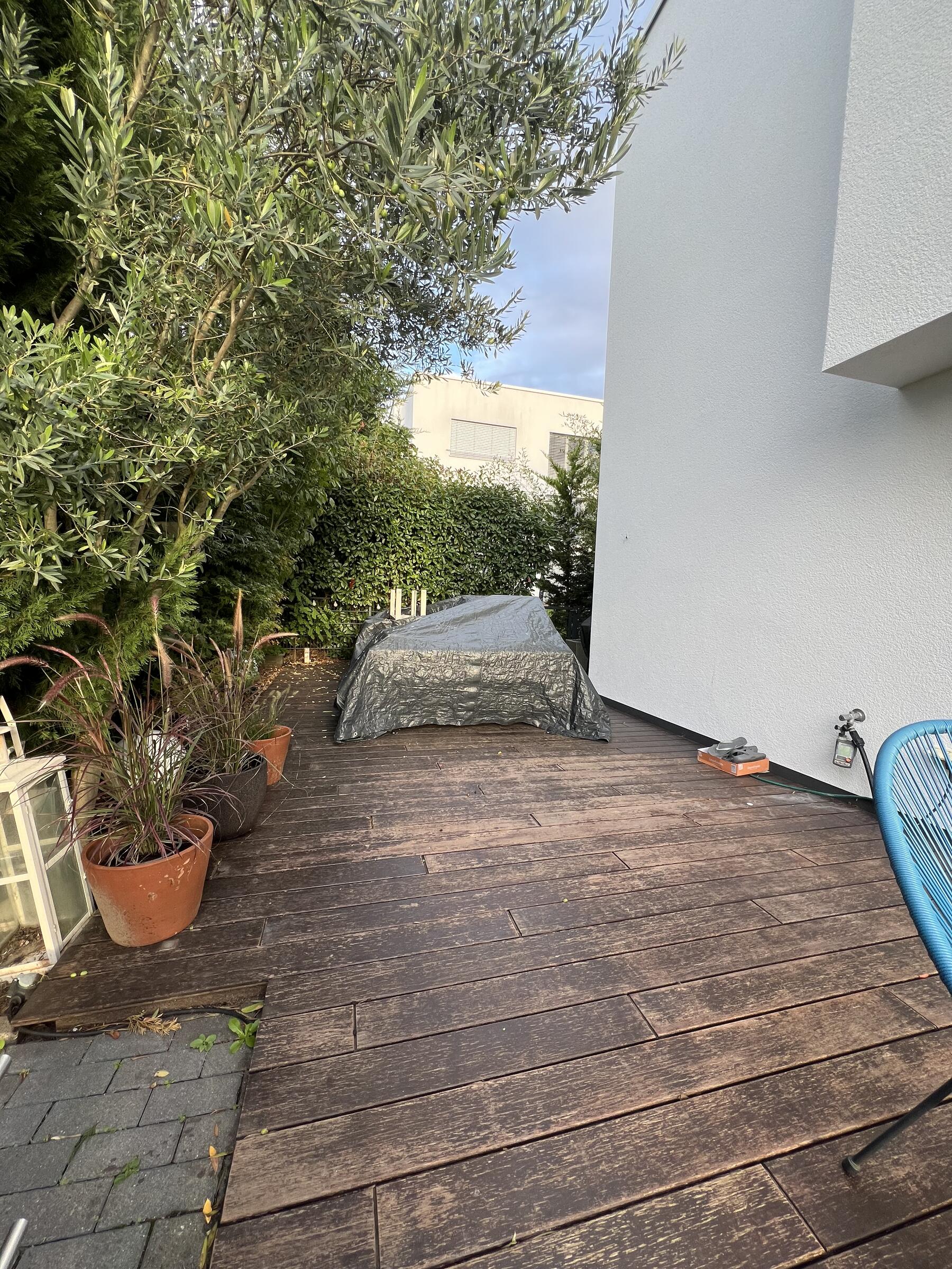 Im 2. OG befinden sich ein Arbeitszimmer, ein Kinderzimmer, ein Gästezimmer sowie ein Sportraum. Im Außenbereich stehen unser Garten, der sowohl vom Schlafzimmer als auch vom Badezimmer direkt zugänglich ist, und die Terrasse, erreichbar vom Wohnzimmer, zur Verfügung. Die zwei Gartenbereiche sind durch eine Außentreppe miteinander verbunden. Nach Absprache dürfen die Räume unseres Hauses umgestaltet werden. Ebenfalls können 3 Pkw-Stellplätze genutzt werden.