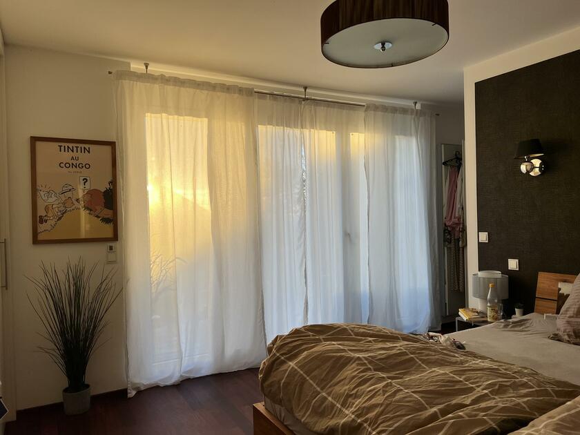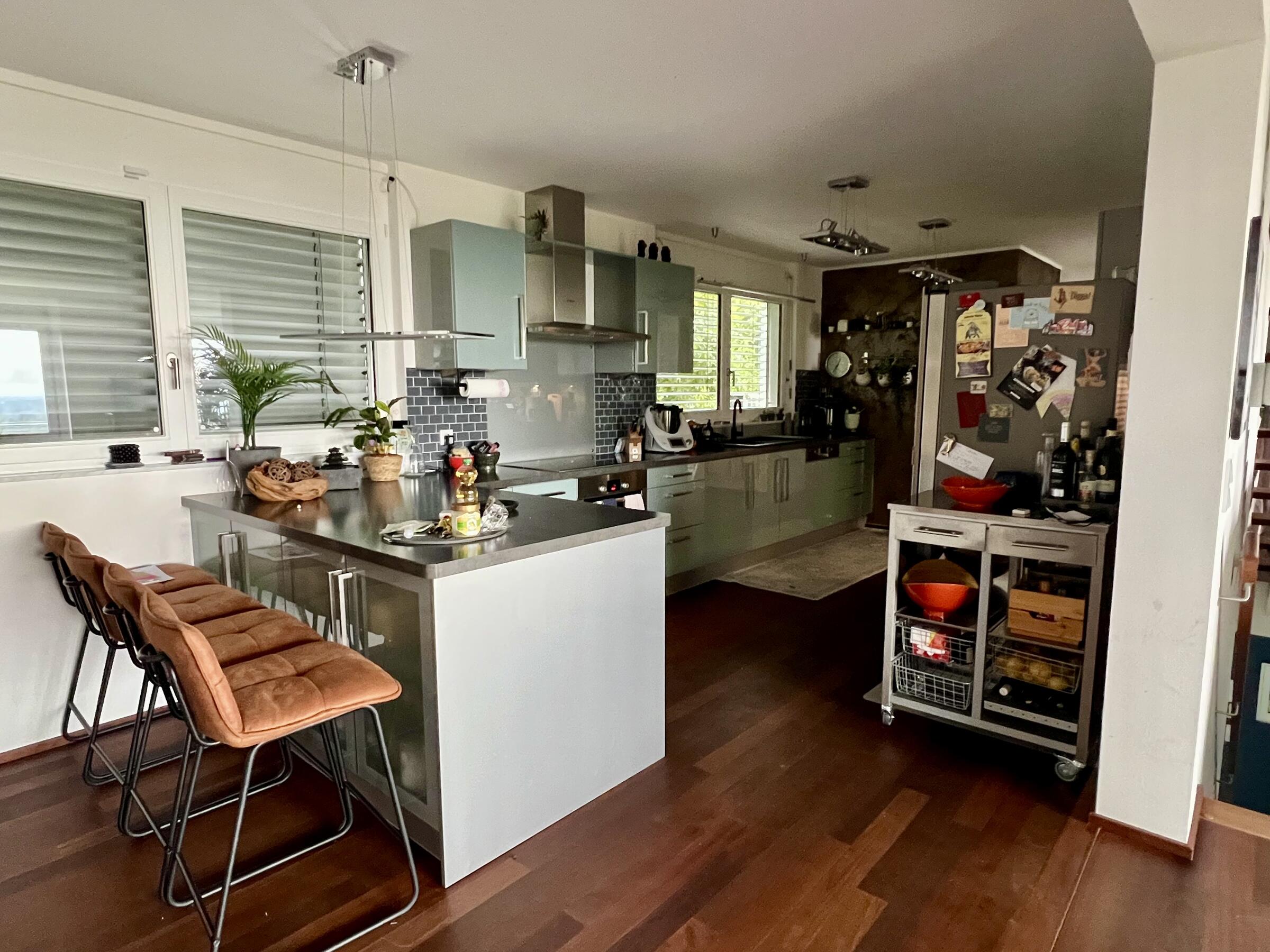 Unser modernes Haus befindet sich in einer ruhigen Wohngegend, eingebettet in eine unberührte Hanglage. Die Räume des Hauses sind offen und hell gestaltet. Durch die bodentiefen Fenster fällt viel Tageslicht in die Räume. Im Erdgeschoss befindet sich ein luxuriöses Schlafzimmer mit direktem Zugang zum Garten, ein Ankleideraum, sowie ein hochwertiges Badezimmer en suite. Im 1. OG befinden sich eine moderne Küche samt Tresen, ein Essbereich und ein einladendes Wohnzimmer.