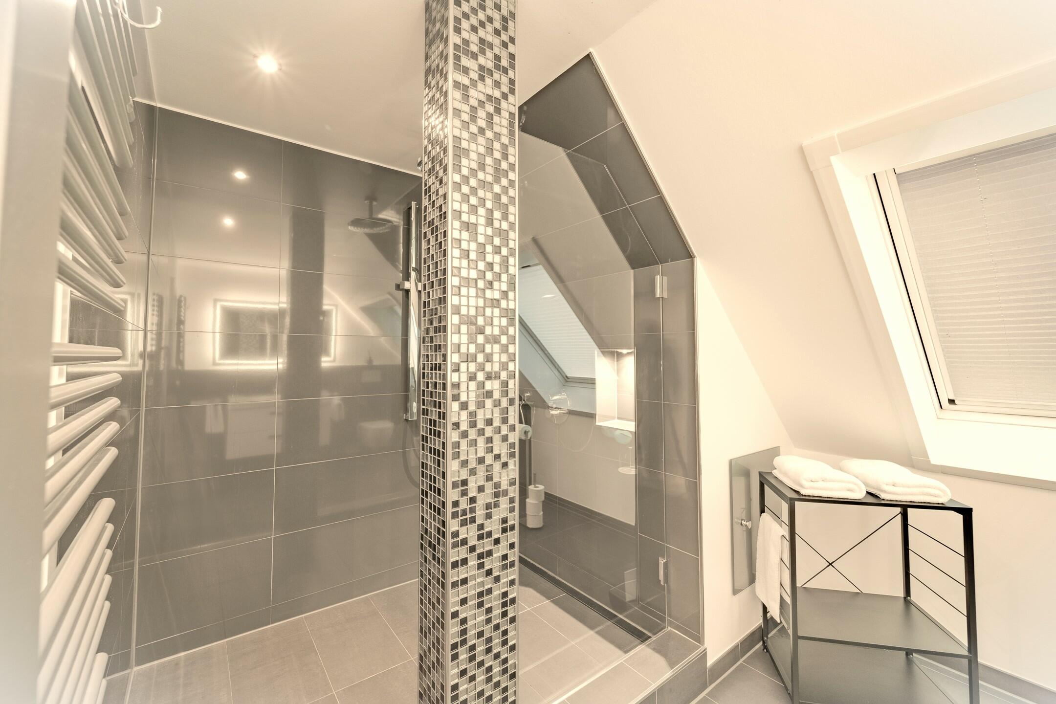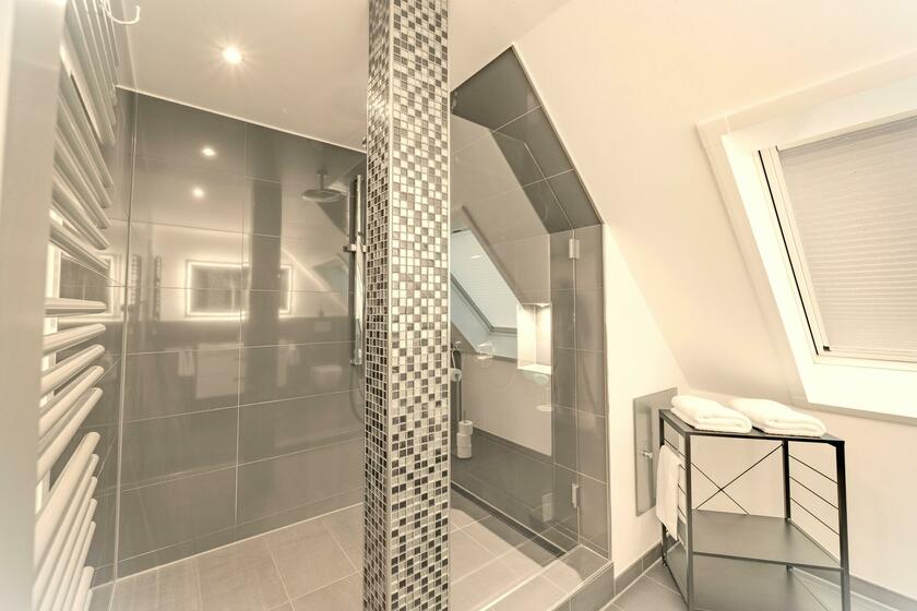 Meine modern eingerichtete 110 m² große Wohnung befindet sich im Dachgeschoss eines Zweifamilienhauses. Der offen gestaltete Wohn- und Essbereich verfügt über eine Deckenhöhe von 4,5 m. Durch die große Fensterfront fällt viel Tageslicht in den Raum. Mit Hilfe einer elektrischen Markise und elektrischen Rollos können die Räume der Wohnung abgedunkelt werden. Die moderne Küche ist üppig ausgestattet. Die Loggia ist nach Süden und der Balkon nach Westen ausgerichtet. Das Badezimmer ist modern eingerichtet. Ebenfalls biete meine Wohnung ein gemütliches Schlafzimmer mit einer Sitzecke und einem begehbarem Kleiderschrank.