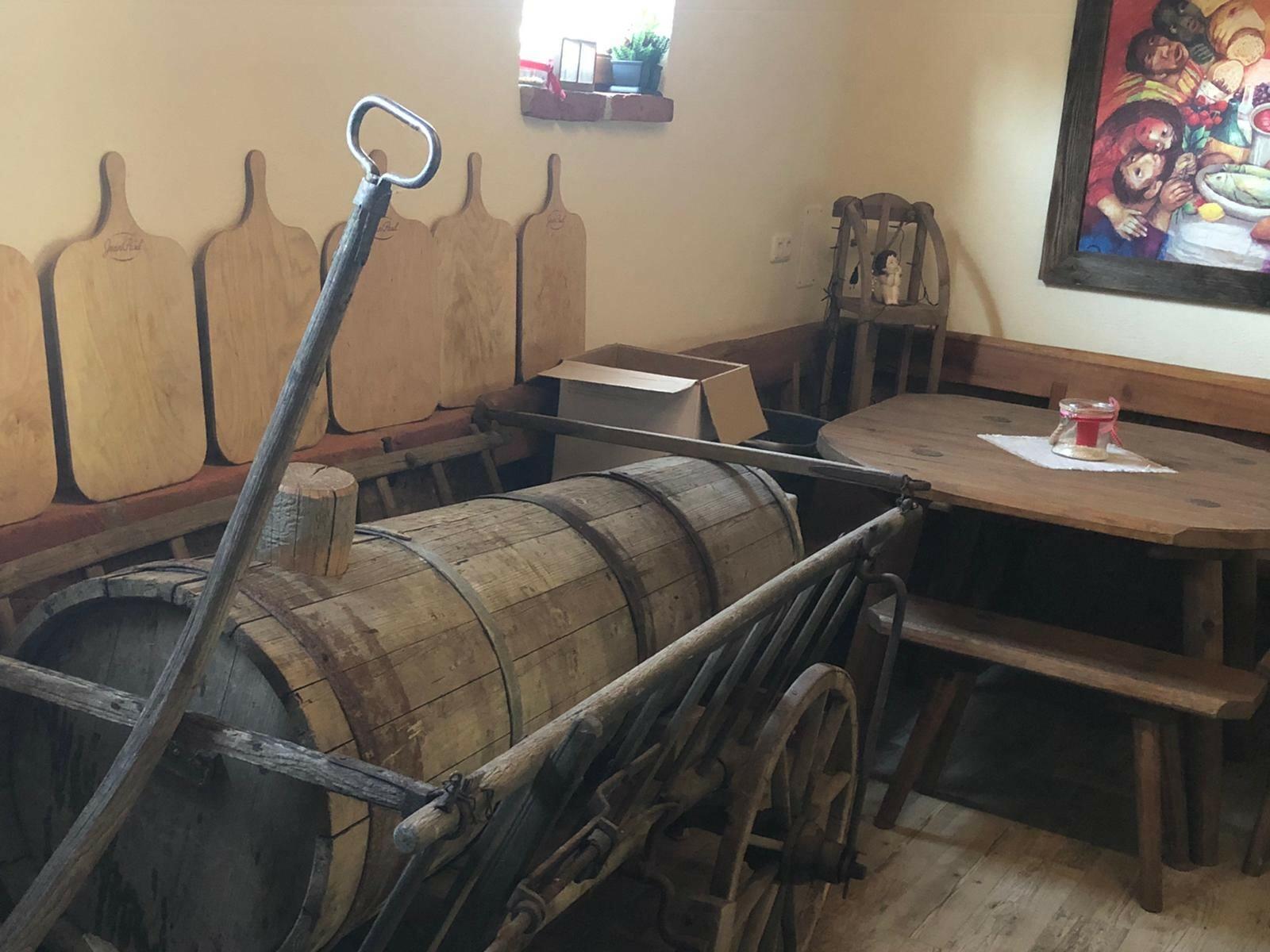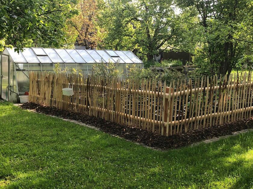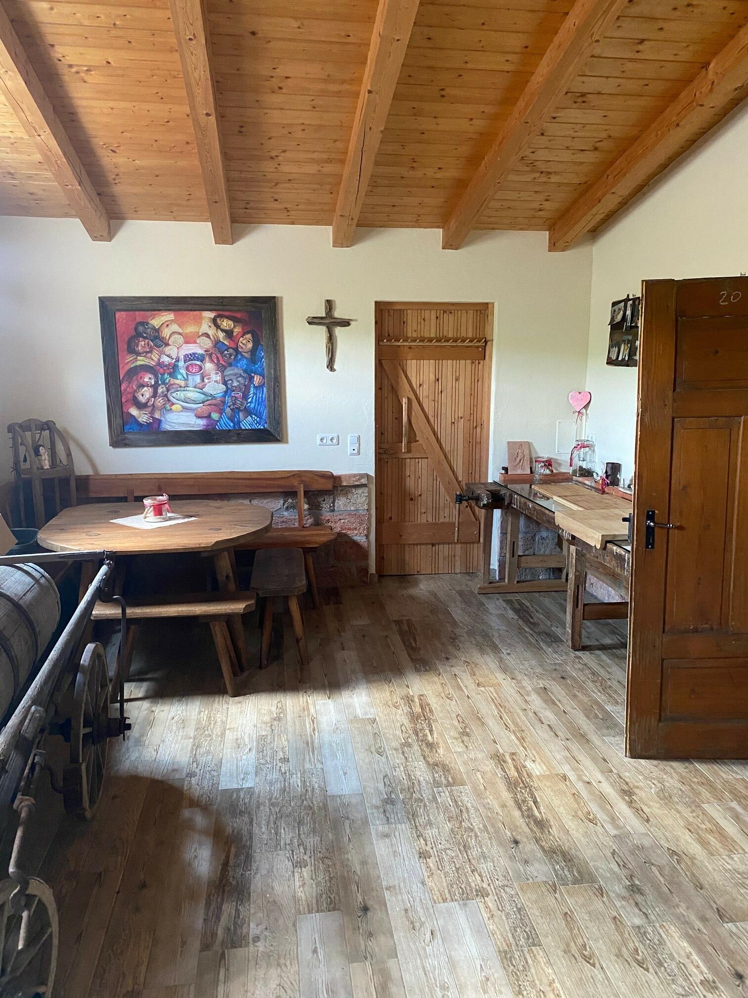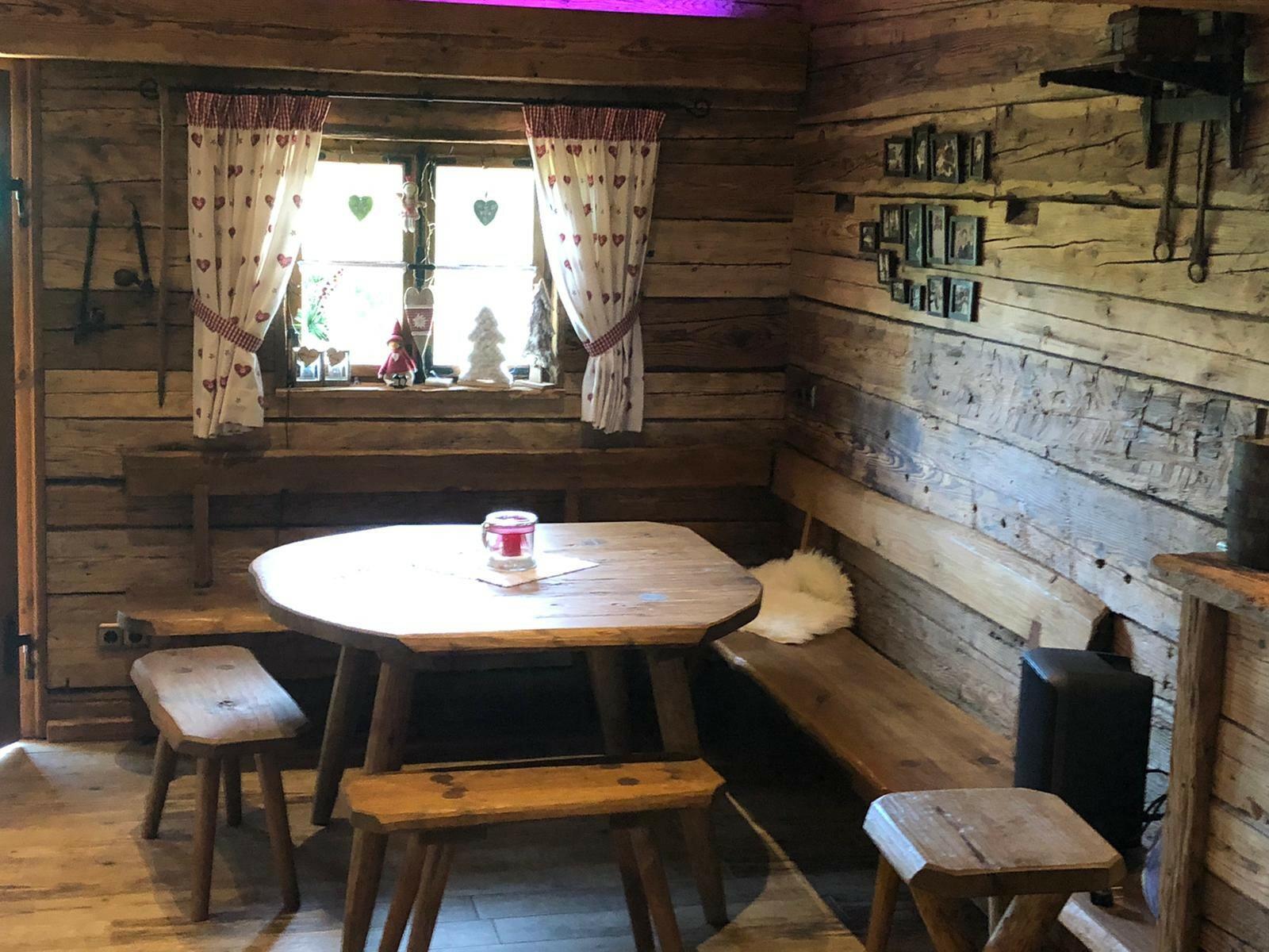 Die sehr charmante Almhütte wurde mit original Altholz aus Tirol liebevoll bis ins Detail aufgebaut. Die größere Stube bietet eine Küche, eine kleine Bar mit Tresen, 3 Tische und einen Holzofen. Der Nebenraum hat einen Essbereich und eine alte Werkbank. Die Hütte hat auch einen Lagerraum. Vor der Hütte gibt es eine Terrasse mit einem überdachten Sitzbereich und großem wunderbar eingewachsenem Garten. In der Umgebung befinden sich Obstbäume und ein großer Hochbeetbereich. Neben der Hütte ist auch noch ein Grillbereich, der mit alten Ziegeln eingefasst ist. Im Wohnhaus nebenan gibt es nutzbare Toiletten. Die Hütte selbst kann mit dem Ofen beheizt werden und hat Warm- und Kaltwasser und LAN-Anschluss.