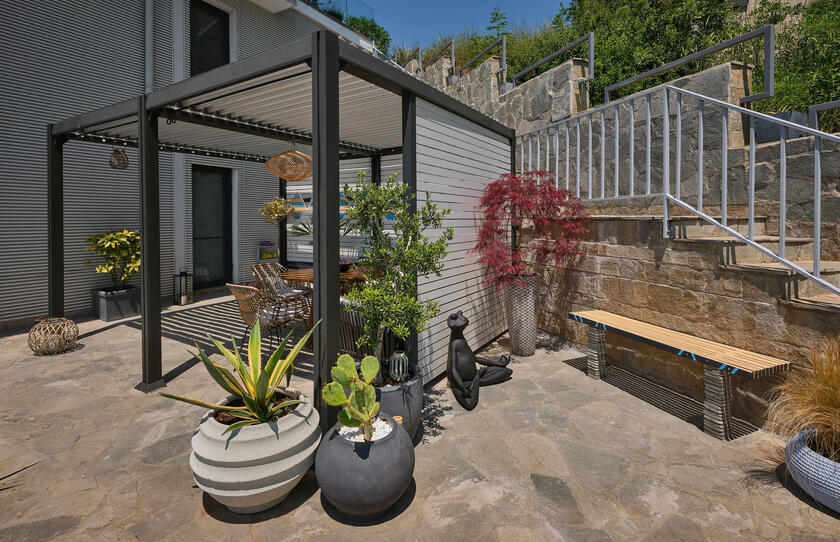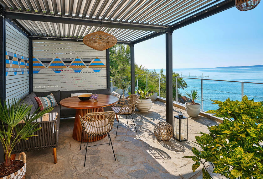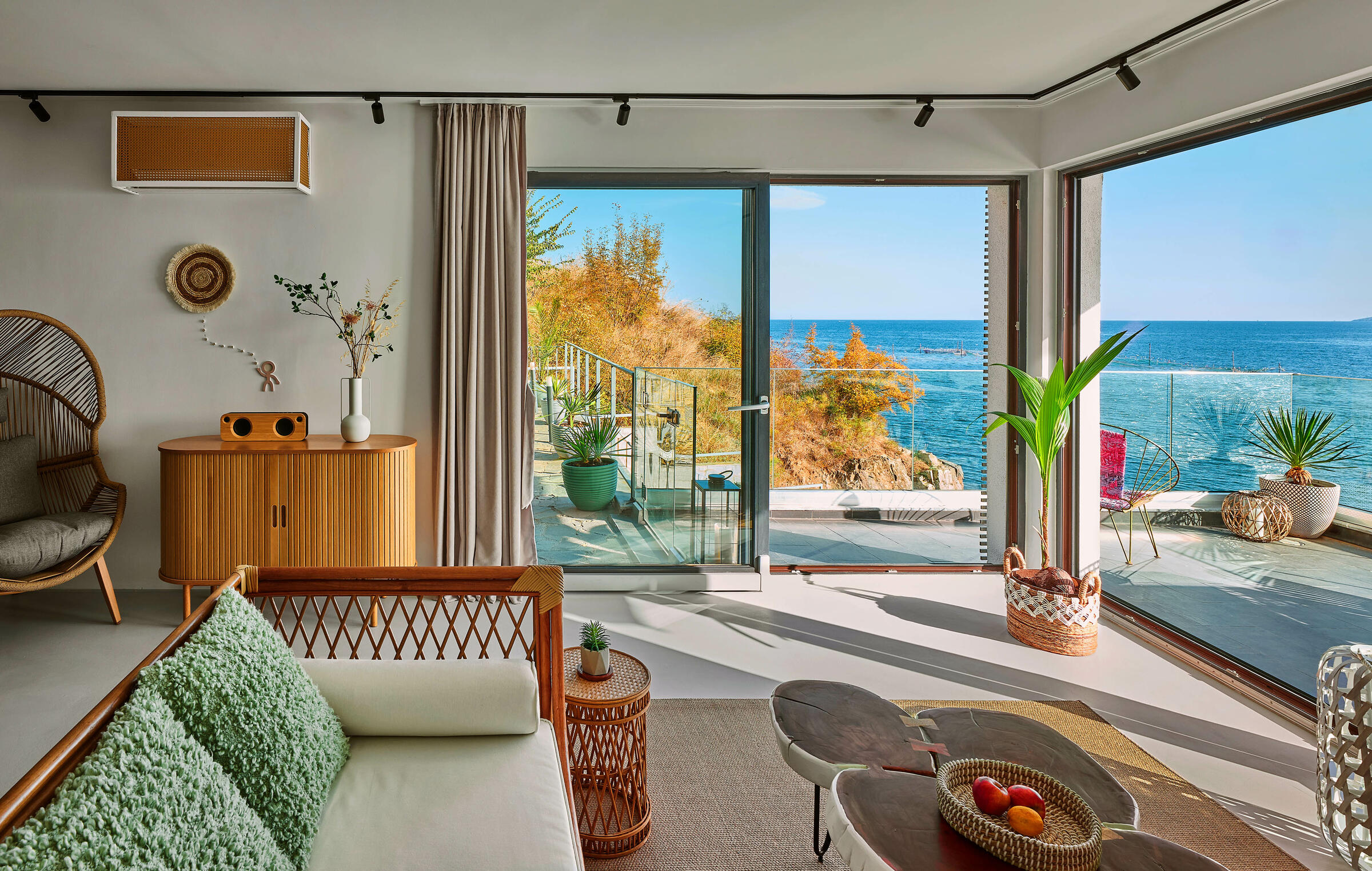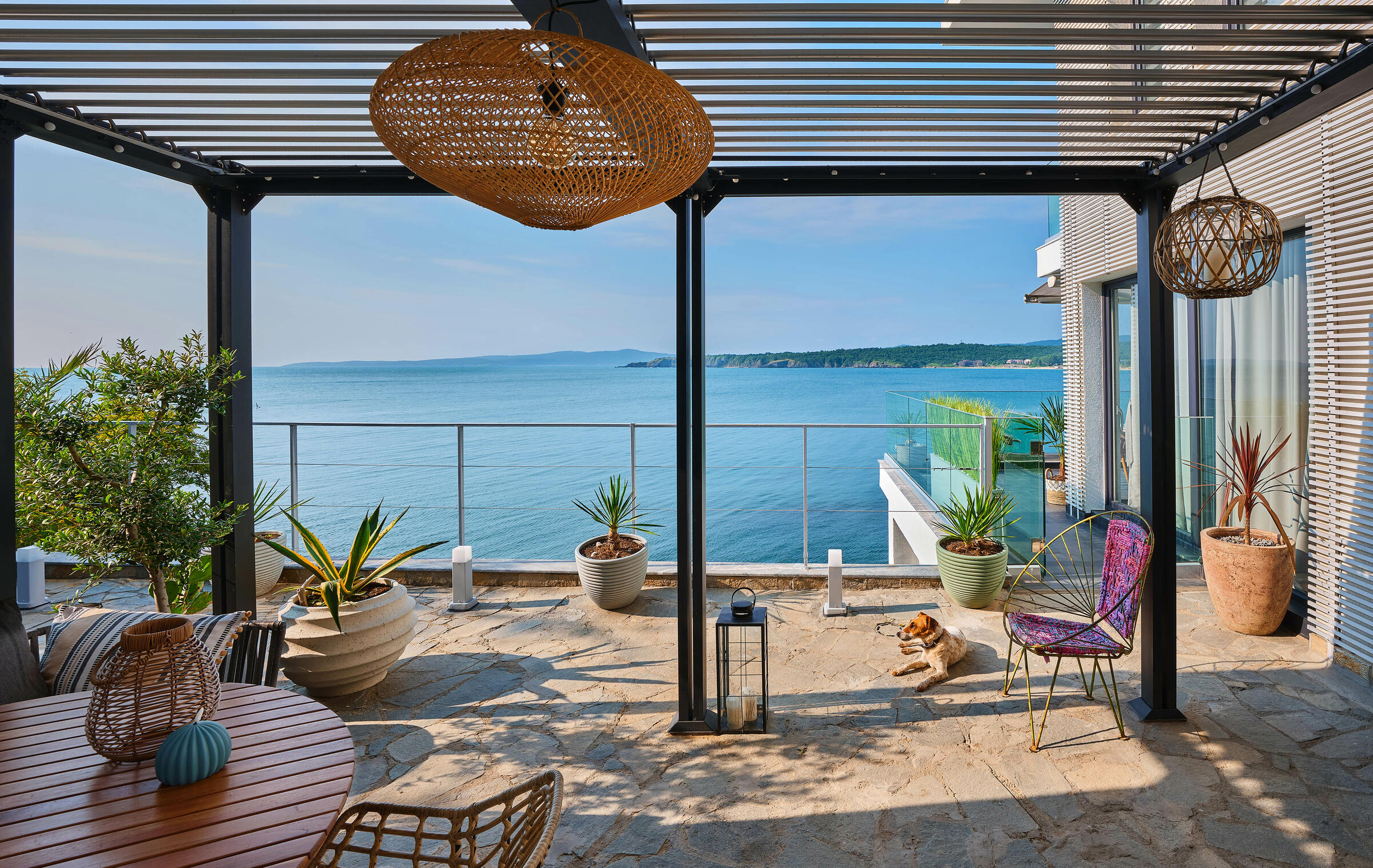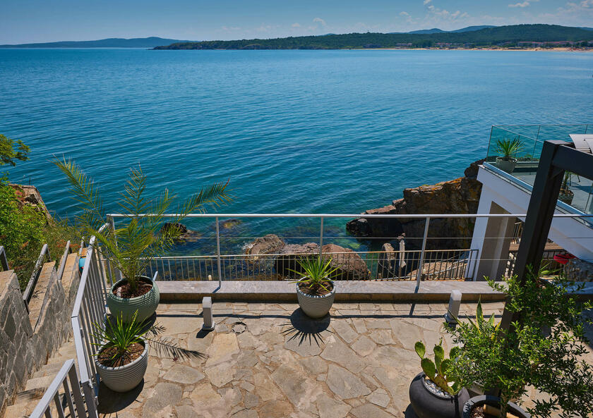 Die ruhig gelegene Ferienwohnung am Schwarzen Meer bietet einen hellen und offen gestalteten Wohnbereich, eine weitläufige Terrasse mit flexibel zu öffnender Pergola sowie einen großen Balkon. Durch die exakte Südausrichtung lassen sich von November bis April sowohl Sonnenaufgang als auch Sonnenuntergang direkt über dem Meer erleben. Die Innenausstattung ist eklektisch-kolonial geprägt und vereint handgefertigte Elemente mit hochwertigen Naturmaterialien. Die maßgefertigte Küche aus poliertem Beton, Stein und Holz bildet das Herzstück der Wohnung, während der beheizbare Betonboden für ein angenehmes Raumklima sorgt. Die teilweise bodentiefen Fenster können mit Vorhängen abgedunkelt werden. Die Wohnung darf nach Absprache umgestaltet werden. Neben der Wohnung können auch sämtliche Außenbereiche auf dem Felsen, einschließlich Buchten, Leitern und felsiger Plateaus, genutzt werden. Ebenfalls können Boote und Yachten direkt vor dem Haus geankert werden. Kostenlose Parkplätze befinden sich auf Straßenniveau. Produktionsausrüstung kann bequem direkt auf dem privaten Hofparkplatz angeliefert werden.