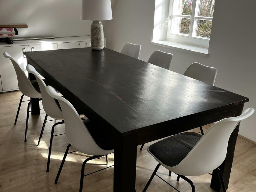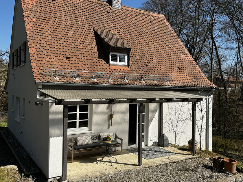 Es handelt sich um ein Einfamilienhaus aus den 1930er Jahren. Umgeben ist es von einem quadratischen, mit Terrassen angeordnetem Garten, der wunderbar eingewachsen ist. Wir haben das Haus eigenhändig mit viel Aufwand renoviert und es mit viel Herzblut individuell eingerichtet und ausgestattet. Das Haus ist sehr modern und minimalistisch gestaltet und eingerichtet. Die Räume sind zwar nicht sehr groß, jedoch wunderbar geschnitten, sodass sie sehr flexibel eingerichtet und verwendet werden können. Die Einrichtungsgegenstände sind sehr hochwertig und an den Wänden hängt moderne Kunst, Metallkunst oder hochwertige Drucke. Die Küche, das Bad und WC sind top eingerichtet und ausgestattet. In Flur, Küche, Bad, WC und Essbereich wurden, dem Altbau angemessen, Fliesen in Schachbrettmuster verlegt. Im Wohnbereich konnte das alte Parkett erhalten werden. Im oberen Stockwerk wurde wertiges Laminat verlegt. Es hat eine sehr besondere und gemütliche Atmosphäre, sodaß sich alle Menschen, die es betreten, sofort wohl fühlen. Wir nutzten das Haus temporär als Pop-up-Store oder für geschäftliche Meetings. Auch wird es als Gästehaus für private Freunde genutzt. Es ist daher wunderbar flexibel einsetzbar, sowohl zeitlich, als auch von der Nutzung her. Drehstrom läßt sich bei unserem Wohnhaus einstecken. Außerdem kann unser 1.600 m² großes Grundstück als Parkfläche mitbenutzt werden.