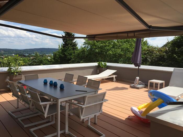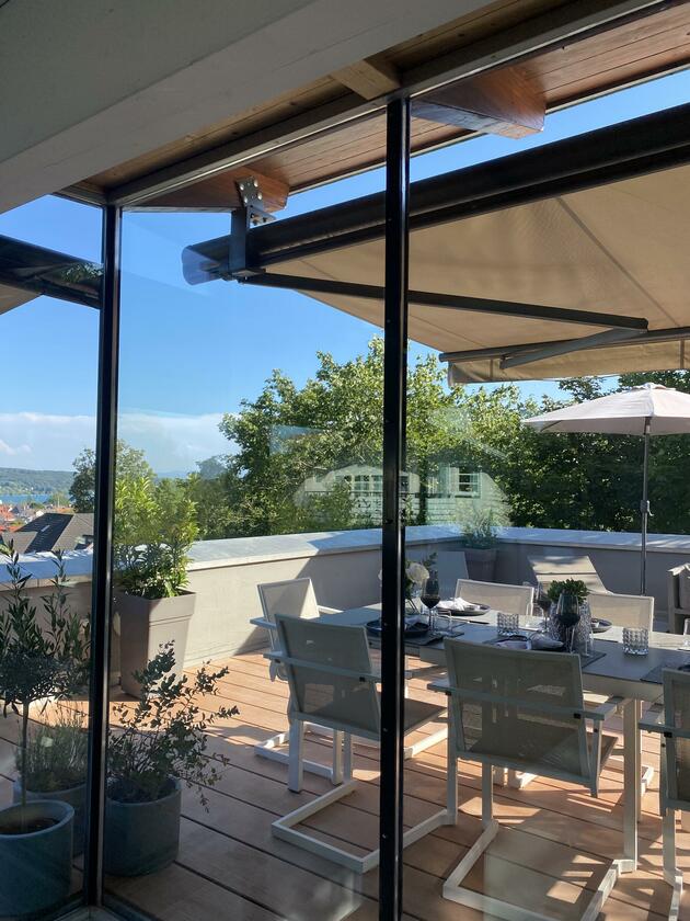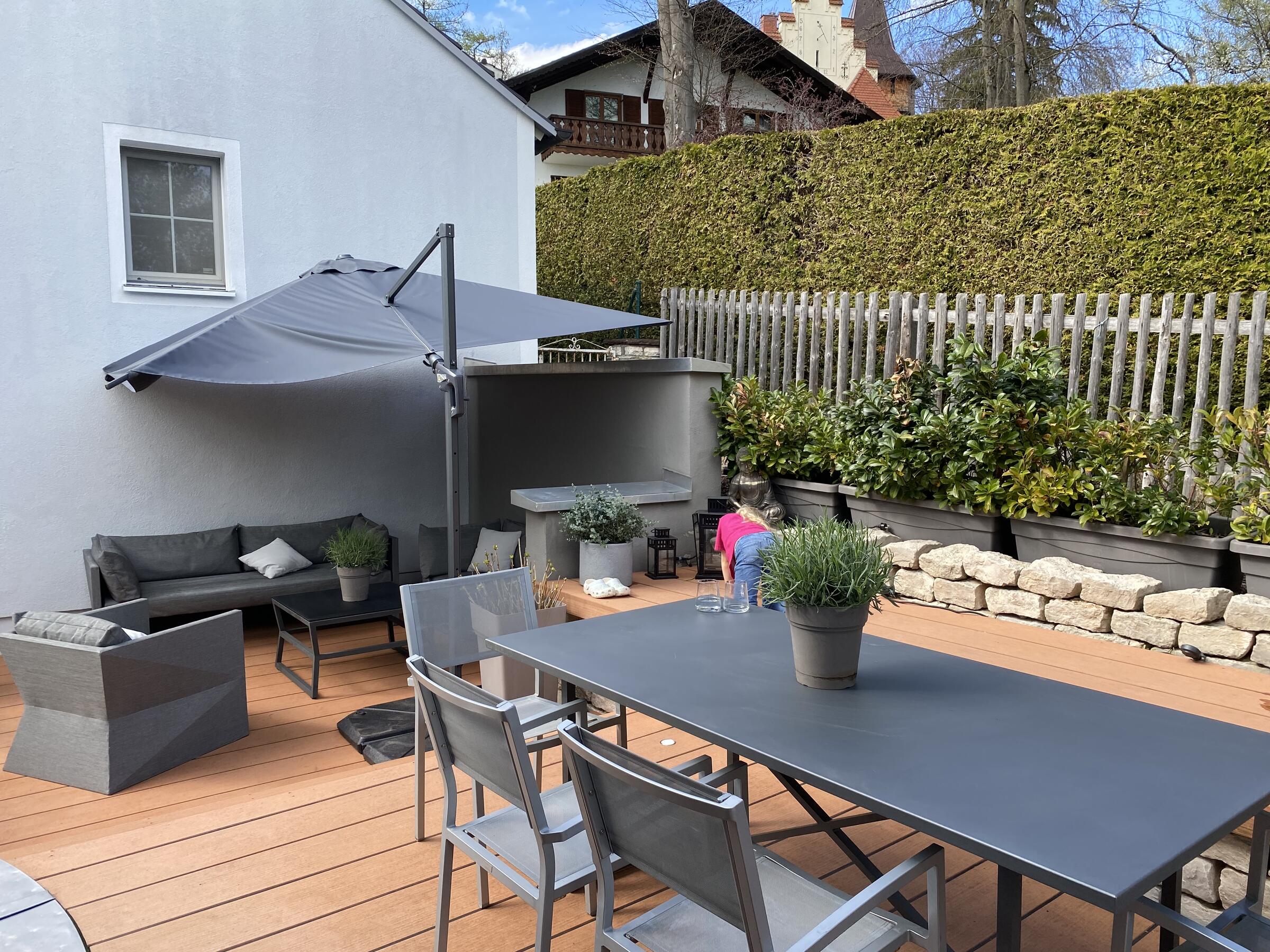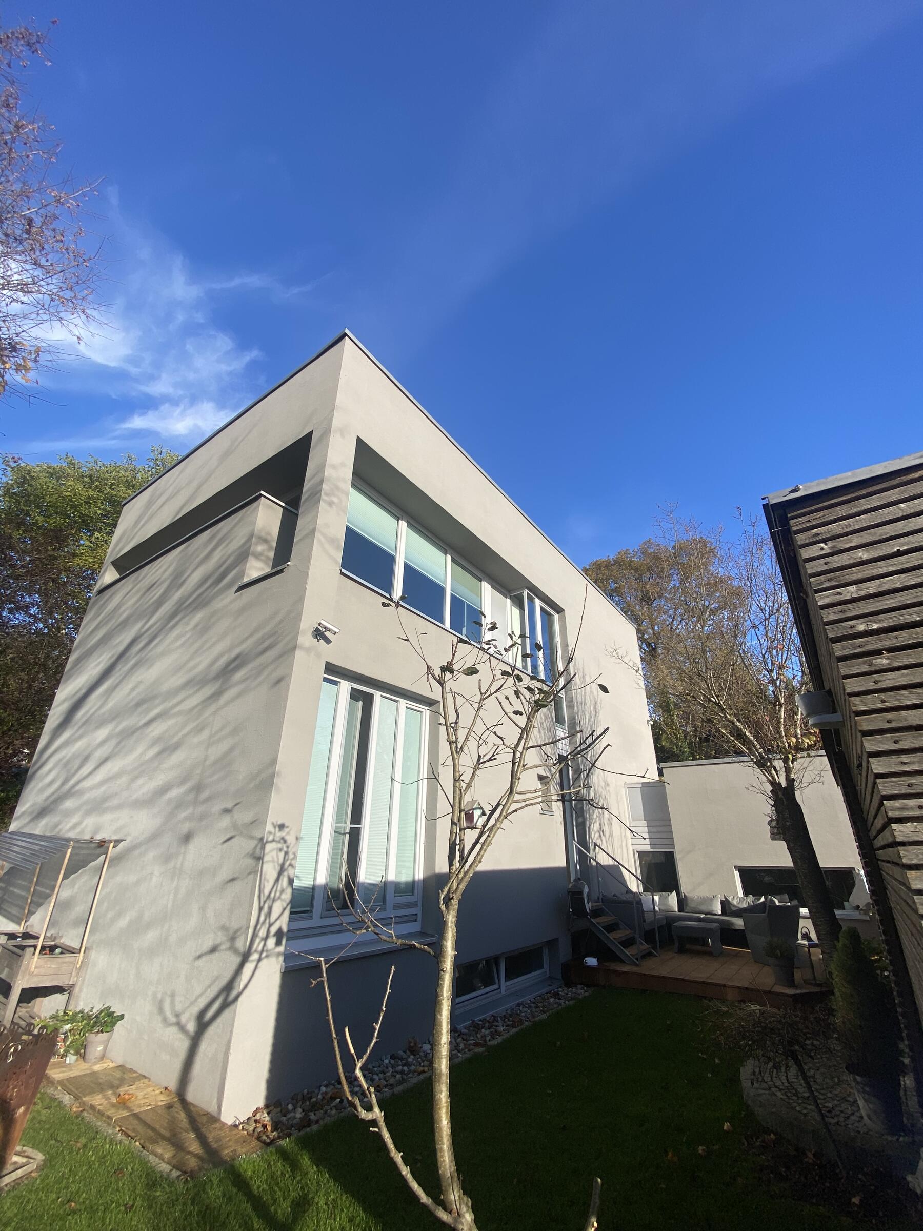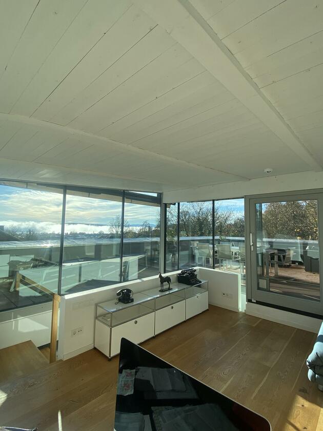 Das moderne Einfamilienhaus in Starnberg ist umgeben von einem Garten und besitzt eine große Dachterrasse mit See- und Panoramablick. Das Haus hat 340 m² und geht über 6 Etagen (SplitLevel) wobei die Hauptetagen mit Zwischenetagen versehen sind.