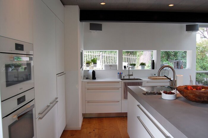 Alle Räume im Inneren des Wohnhauses können für Film- und Fotoproduktionen gemietet werden. Im unteren Geschoss des architektonisch interessanten Hauses befinden sich Wohnräume und Bäder und Zugänge zum Garten. Vom Vorplatz des Hauses kommt man über eine Gartentreppe auf einen sonnigen Freisitz, der auch von der Wohnküche aus erreichbar ist. Das Haus ist hell, freundlich und mit modernen Möbeln und Dekorationselementen ausgestattet. Ohne Zwischenwände ist der Blick von der Küche über den Essbereich ins Wohnzimmer möglich. Große Fenster und ein heller Holzboden unterstützen den lichten Charakter des Hauses. Eine Holztreppe führt in den Bereich des Dachgeschosses. Zur Sonnenterrasse, die einen schönen Ausblick auf die ländliche Umgebung und den nahen See bietet, kommt man über ein Terrassenvorzimmer, das von drei Fensterseiten beherrscht wird. Teamaufenthalt, Garderobe, Maske oder Catering finden geeignete Räumlichkeiten in diesem lichtgeprägten Haus. 3 Parkplätze stehen auf Anfrage zur Verfügung.