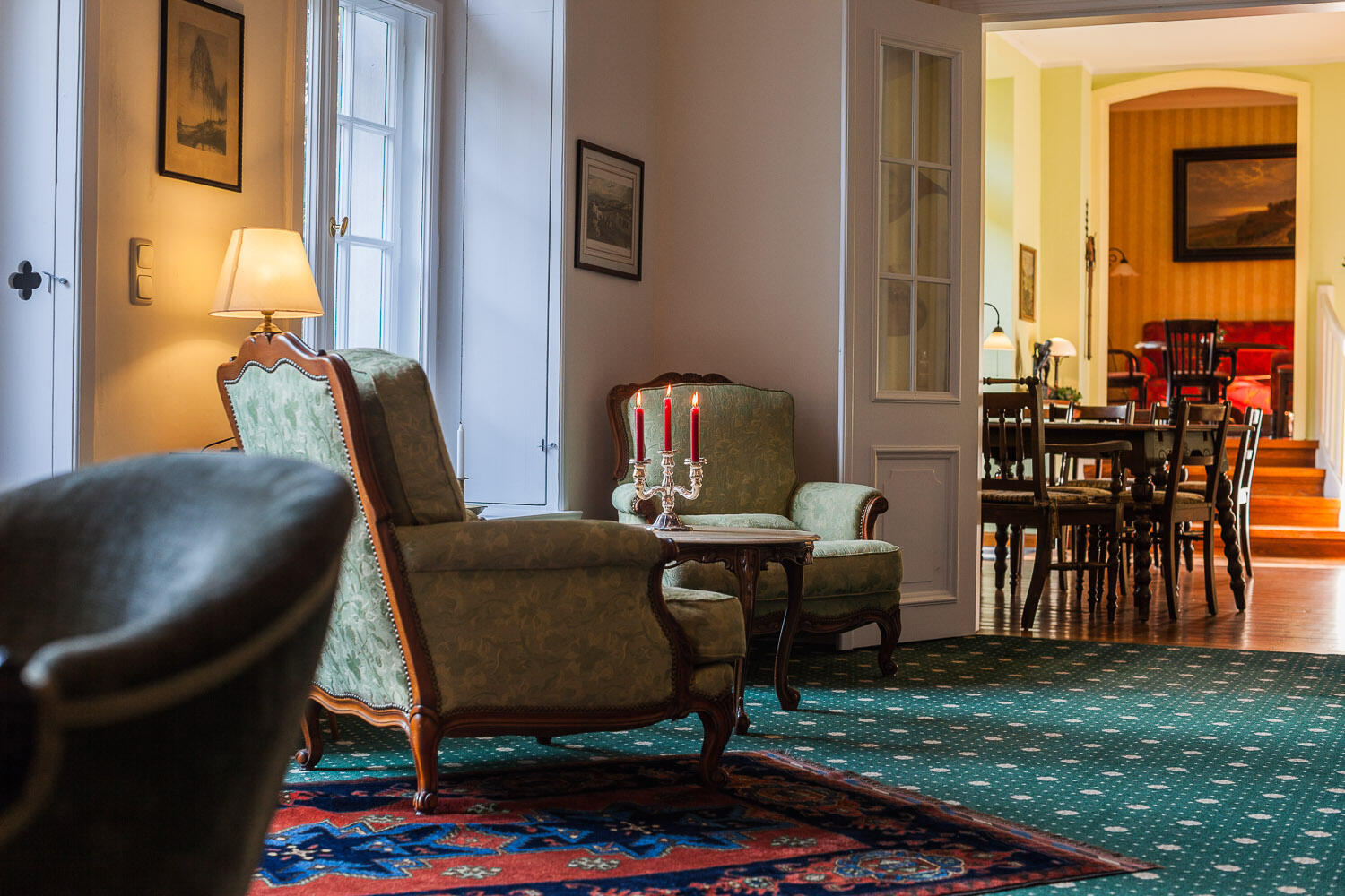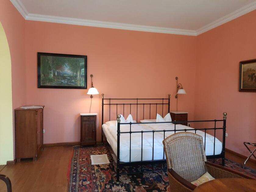 Das Gutshaus wurde im 19. Jahrhundert im Biedermeierstil erbaut und 1998 restauriert und zu neuem Leben erweckt. Im Gutshaus, das idyllisch am Ende einer kopfsteingepflasterten Allee liegt, befinden sich eine historische Dorfschänke, 3 individuell gestaltete Zimmer, die für Produktionen zur Verfügung stehen, ein Kaminsaal mit Bechstein Flügel, ein gemütlicher Salon mit Blick in den beeindruckenden Gutshauspark, 2 Gasträume und eine kleine Bibliothek. Unsere rustikale Zirbenholz-Sauna liegt versteckt am Ende eines kleinen Birkenwaldes. Auf dem Gut gibt es Schafe, Enten und 1 Katze. Unsere Möbel und Innenausstattung bestehen vollständig aus restaurierten Antiquitäten (Biedermeier, teilweise Gründerzeit). Im Gutshaus befindet sich eine Ferienwohnung, die für Teamaufenthalte und Lagerung von Equipment genutzt werden kann. Es stehen ca. 15 Pkw-Parkplätze sowie eine große Stellfläche (ca. 6 x 4 m) zur Verfügung. Eine Wäschekammer ist nutzbar. Starkstromanschluss ist vorhanden.