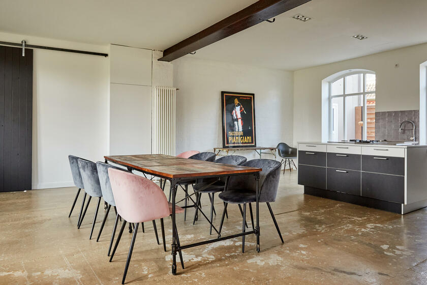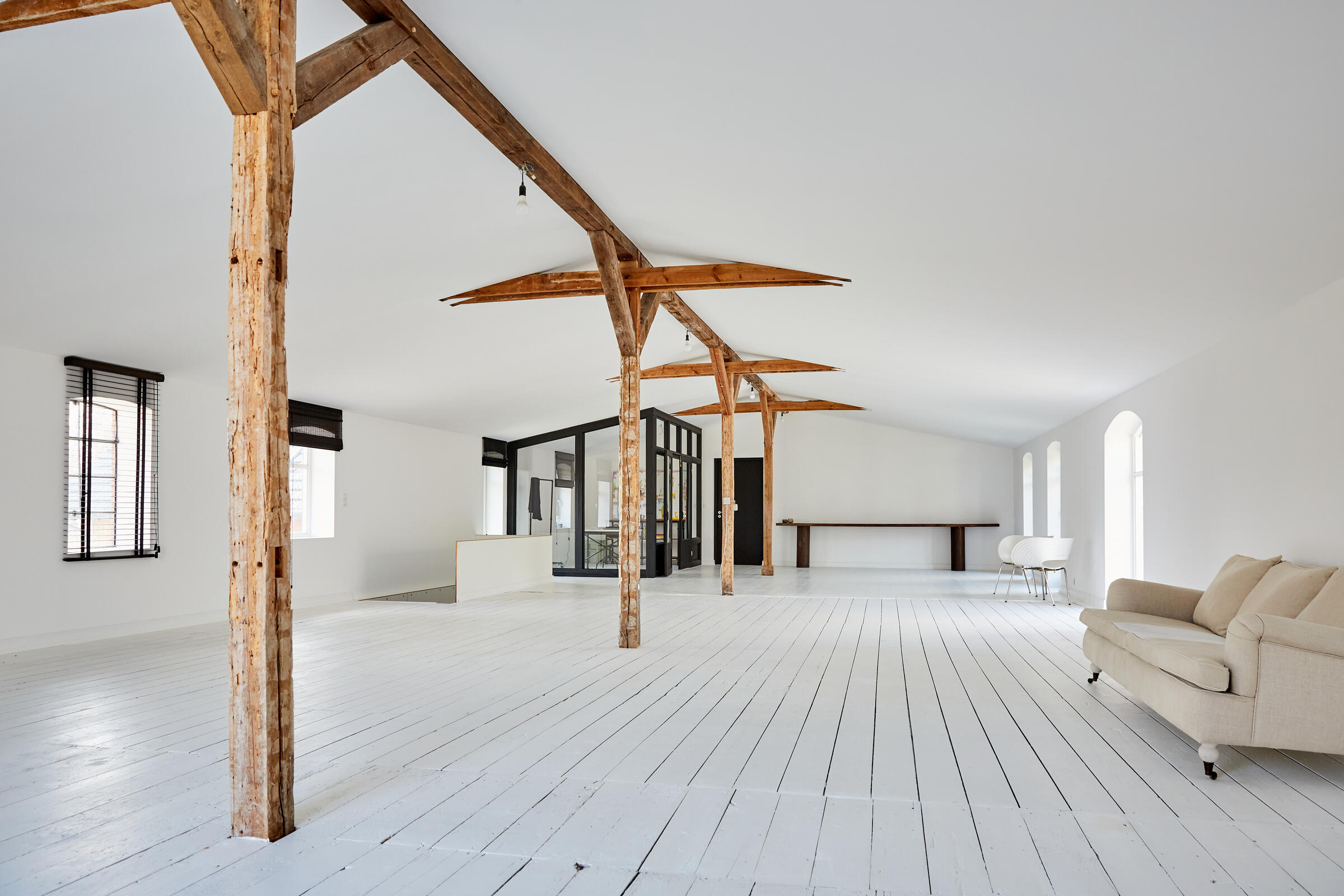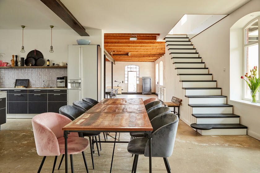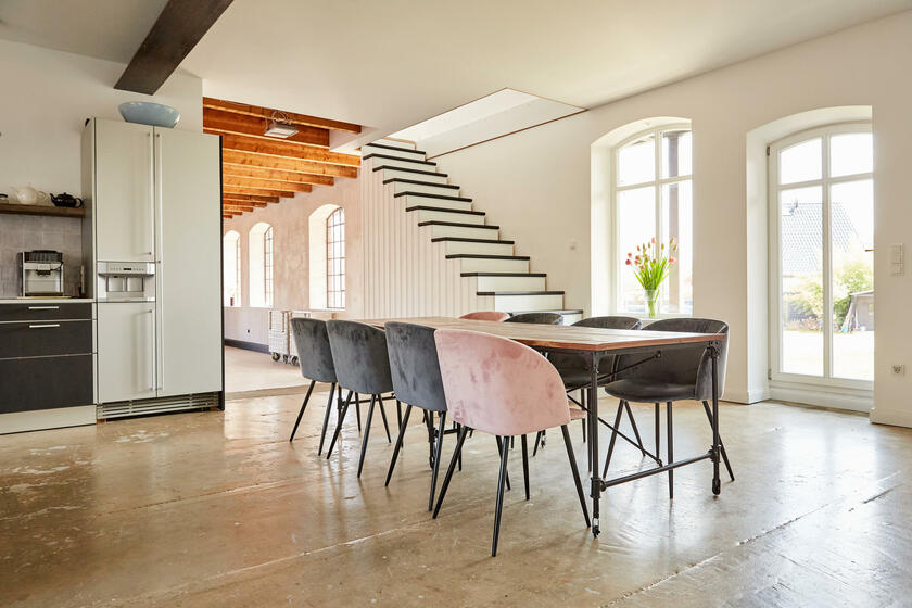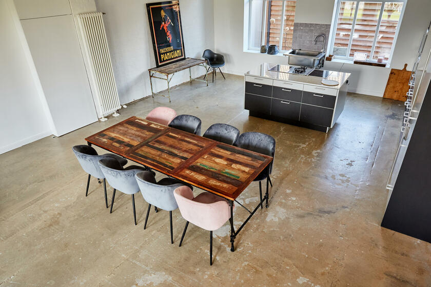 Mein Studio befindet sich ca. 30 km südlich von Hamburg und bietet 300 m² Innenfläche und 2.700 m² Garten- und Terrassenfläche. Die Räume teilen sich auf in 3 Bereiche. Der 1. Studiobereich ist ein Daylight Studio im Loftstil und besticht durch seine großzügigen Stahlfenster, die Raumhöhe und seinen industriellen Charme. Außerdem bietet es Zugang zur Studioküche und zur umlaufenden Veranda mit Outdoorküche und zur Terrasse. Der 2. Studiobereich ist ein Mix von alten und neuen Materialien im einheitlichen Weiß für endlose Gestaltungsmöglichkeiten. Der 3. Studiobereich ist eine große und helle Küche im modernen Stil.