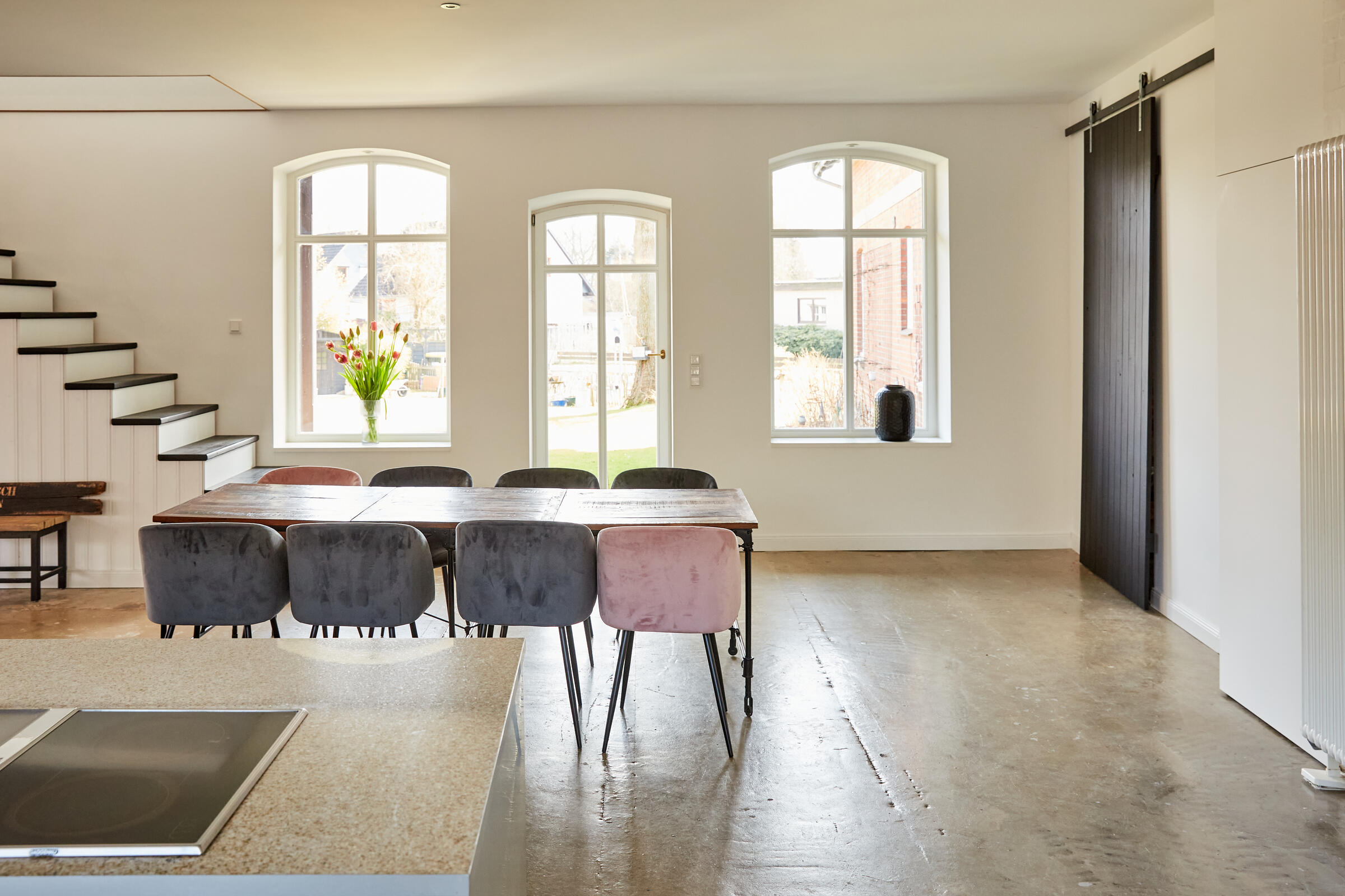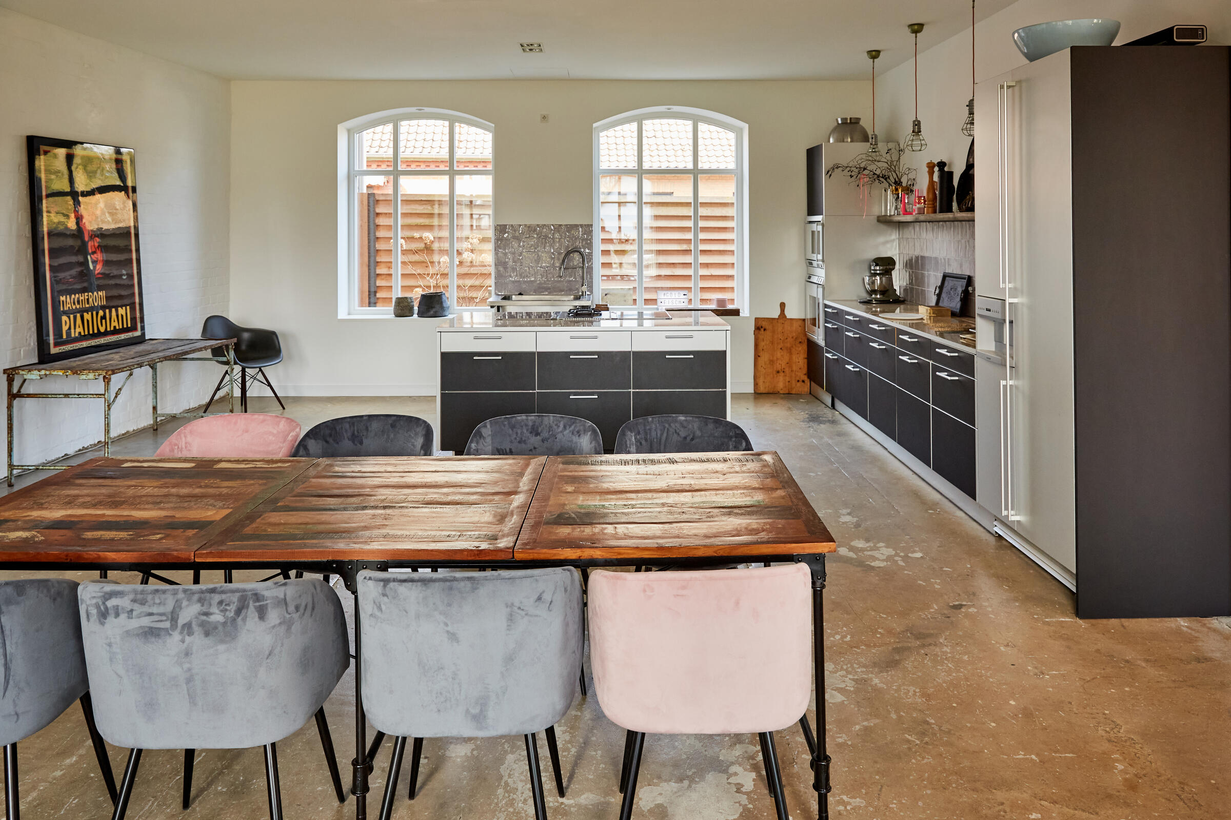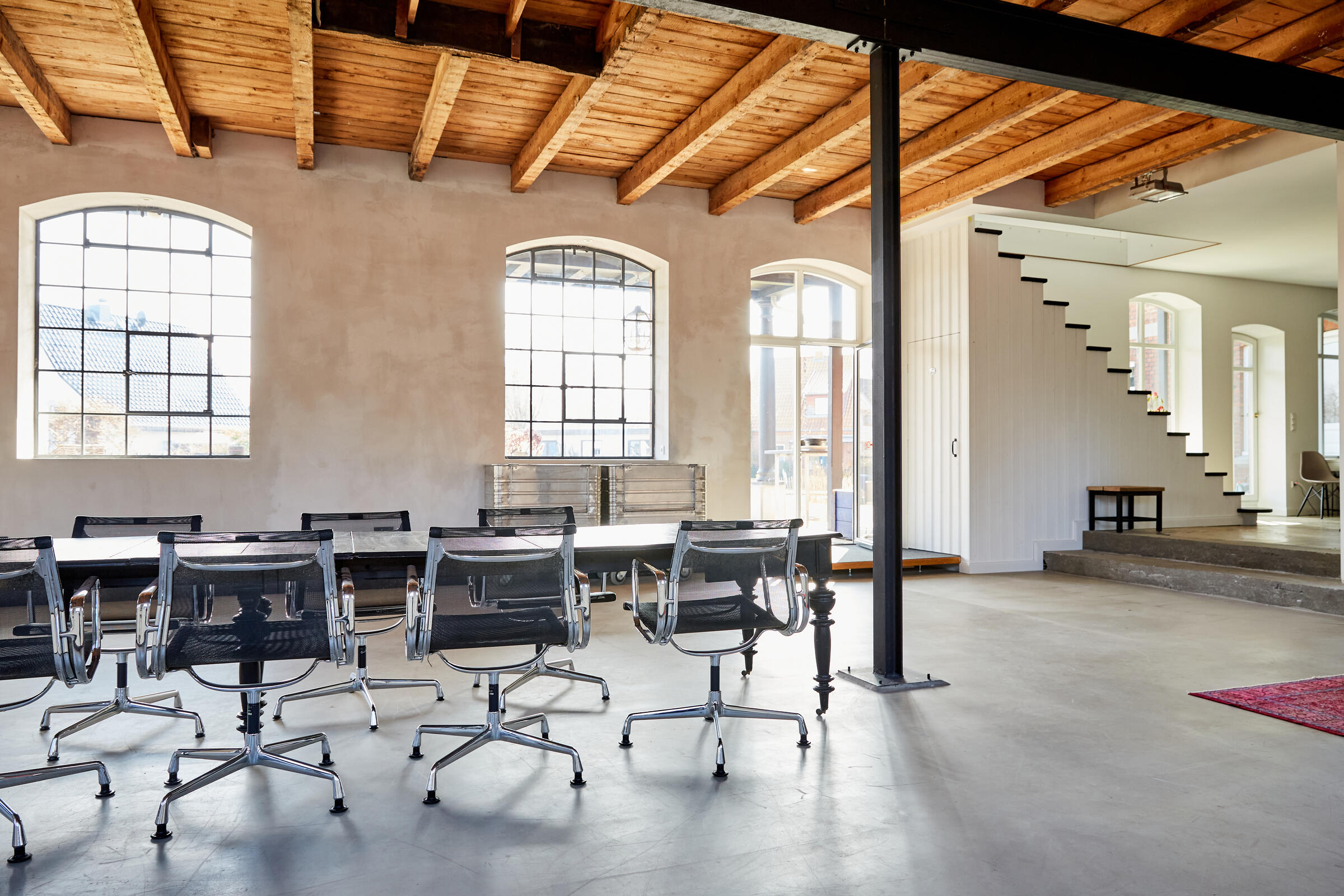 Mein Studio befindet sich ca. 30 km südlich von Hamburg und bietet 300 m² Innenfläche und 2.700 m² Garten- und Terrassenfläche. Die Räume teilen sich auf in 3 Bereiche. Der 1. Studiobereich ist ein Daylight Studio im Loftstil und besticht durch seine großzügigen Stahlfenster, die Raumhöhe und seinen industriellen Charme. Außerdem bietet es Zugang zur Studioküche und zur umlaufenden Veranda mit Outdoorküche und zur Terrasse. Der 2. Studiobereich ist ein Mix von alten und neuen Materialien im einheitlichen Weiß für endlose Gestaltungsmöglichkeiten. Der 3. Studiobereich ist eine große und helle Küche im modernen Stil.