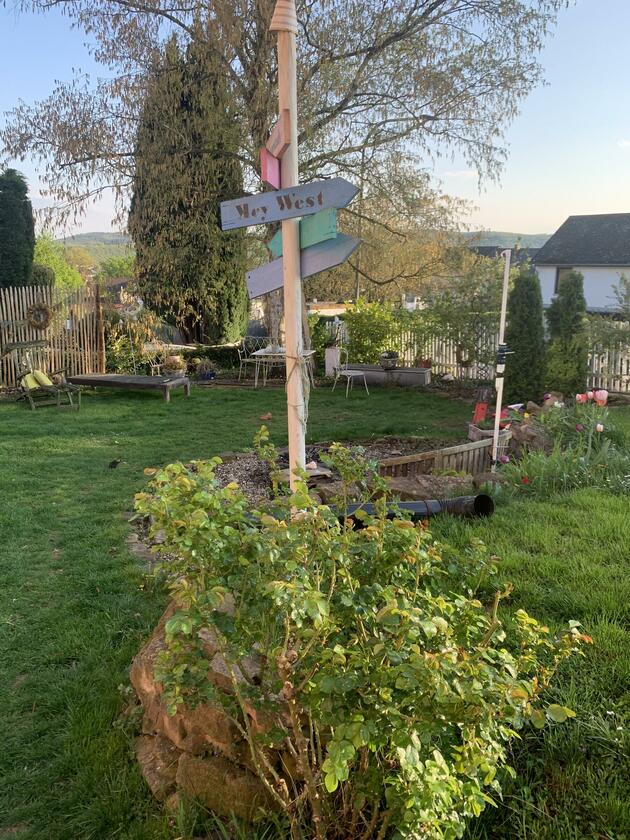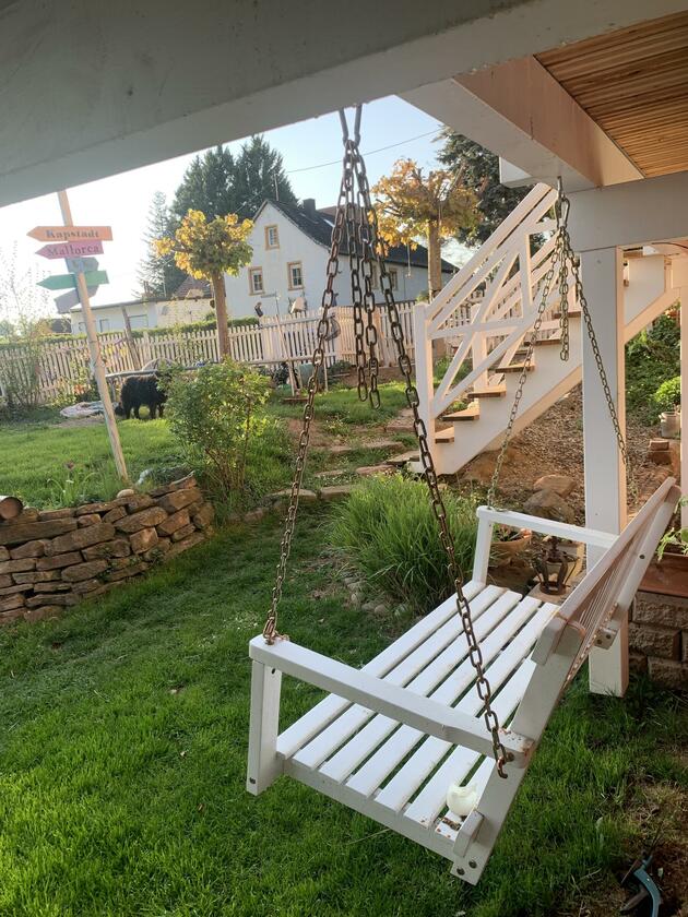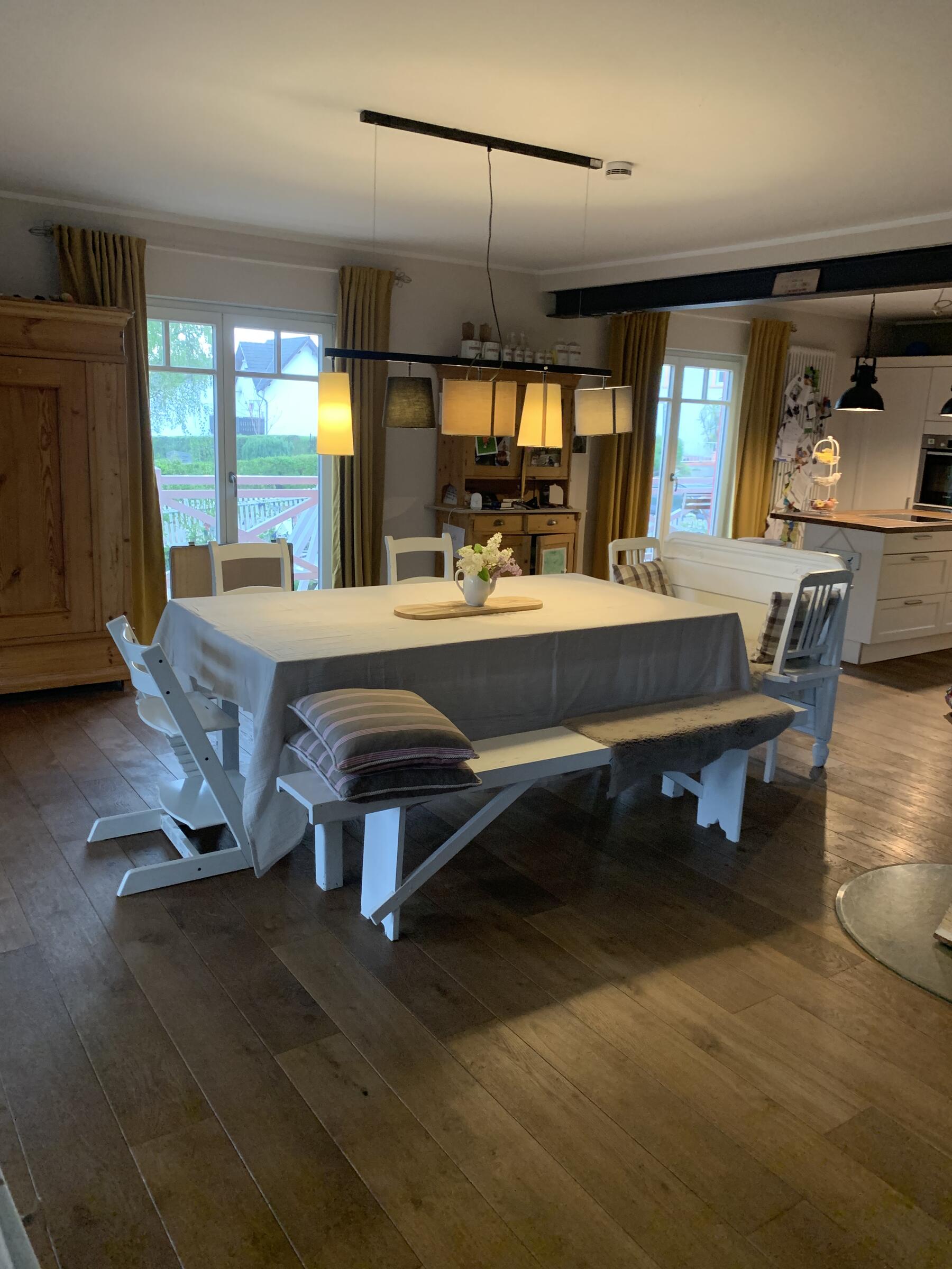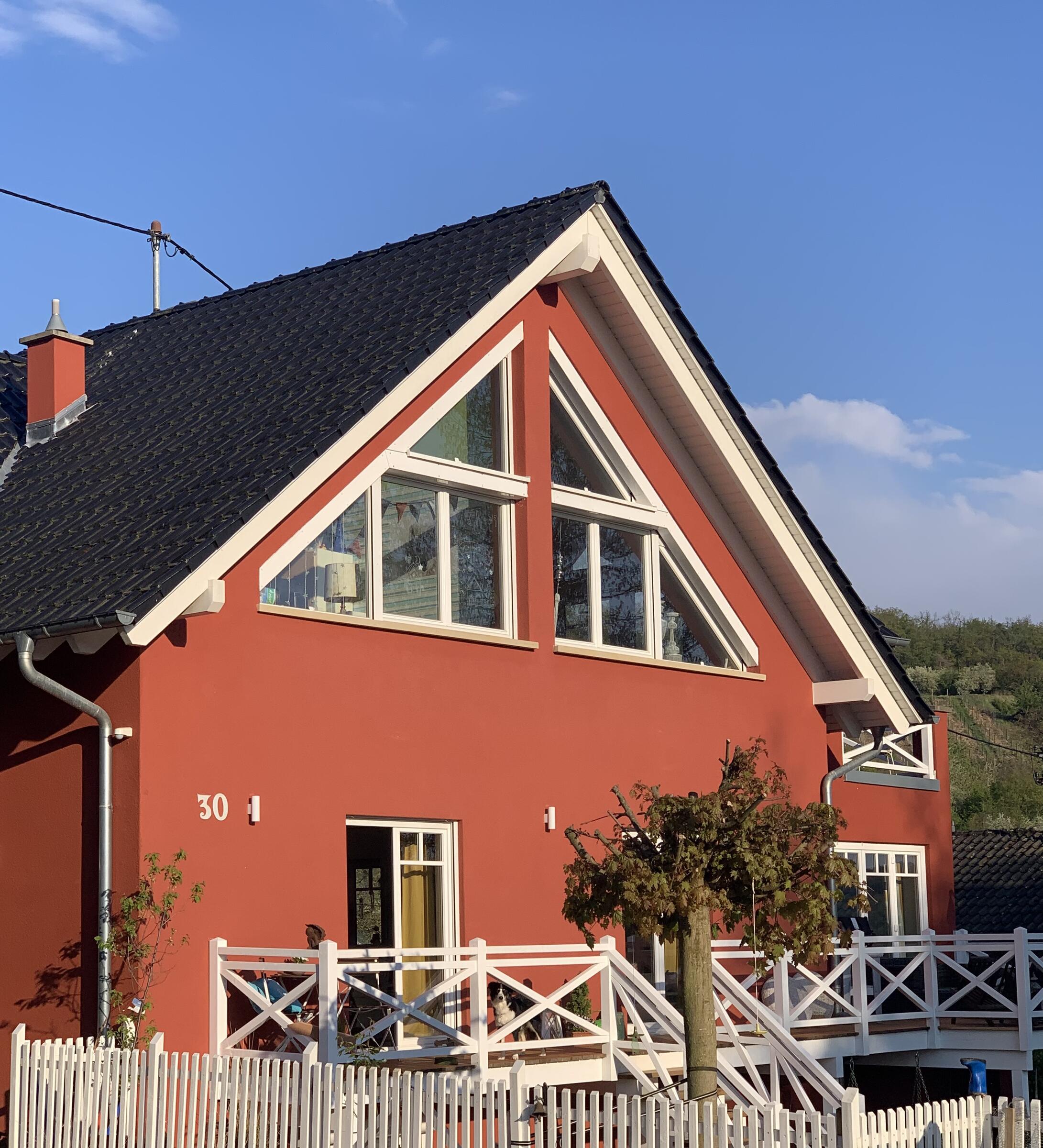 Das Einfamilienhaus wurde 1960 erbaut und 2010 aufwändig saniert und erweitert. Es liegt in einem kleinen hübschen Dorf am Fuße des Rotenfels und ist eingebettet in einen hübschen, individuell gestalteten Garten der von der Terrasse aus über eine Treppe begehbar ist. Im inneren des Hauses wurde bewusst mit dem offenen Raumkonzept gespielt. Die offene Küche mit Kochinsel, der Ess- und Wohnbereich gleichen einem großen Raum der teilweise mit selbstgebauten Möbeln und Liebhaberstücken eingerichtet ist. Von hier aus ist auch die Terrasse begehbar, die sich über die gesamte Front des Hauses erstreckt.