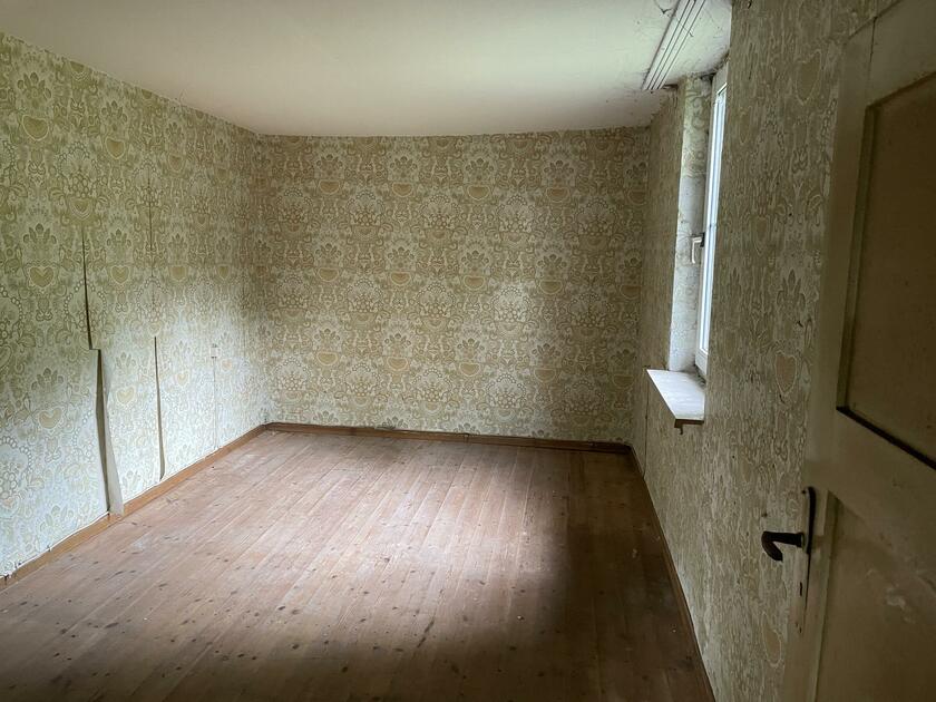 Das Wohnhaus des leerstehenden Bauernhofes ist ca. im Jahr 1790 erbaut worden und hat keinerlei moderne Einrichtung. Die einzelnen Wohnräume sind nicht renoviert und karg. Das Haus hat einen Wasseranschluss und biete auch Hausstrom. Es gibt jedoch kein Badezimmer oder ähnliches. In der Küche steht nur ein alter Ofen. Das ca. 4.000 m² große Grundstück ist wild bewachsen. Die neben dem Haus befindliche Scheune hat zwei Stallungen, wovon eine wegen möglicher Einsturzgefahr nicht betreten werden darf. Die andere Scheune hat ein großes Loch im Dach und ist somit nur mit Vorsicht zu betreten.