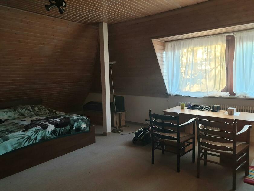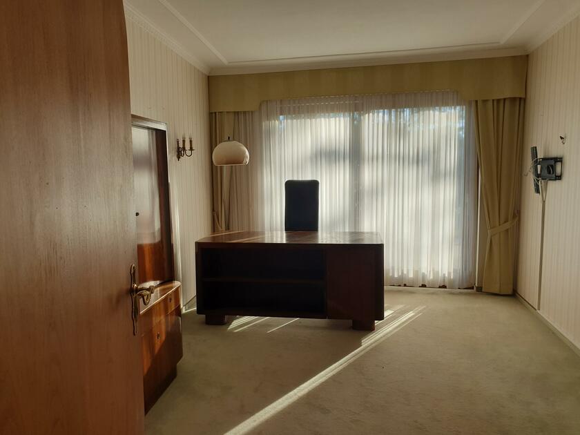 Unsere unbewohnte und teilmöblierte Villa befindet sich in einer ruhigen Umgebung, in der Nähe des Stadtwaldes. Die Wohnräume haben ein stilvolles Design und bieten eine besondere und edle Atmosphäre. Die großen Fensterflächen sind nach Süden ausgerichtet und lassen viel Tageslicht in die Räume. Die Fenster können mit Hilfe von vorhandenen Gardinen nur teilweise abgedunkelt werden. Die Räume dürfen nach Absprache umgestaltet werden. Der Innenpool ist momentan stillgelegt und kann nicht befüllt werden. Im Außenbereich steht unser großer Garten und die südlich ausgerichtete Terrasse zur Verfügung. Kostenlose Parkplätze gibt es direkt vor unserem Grundstück.