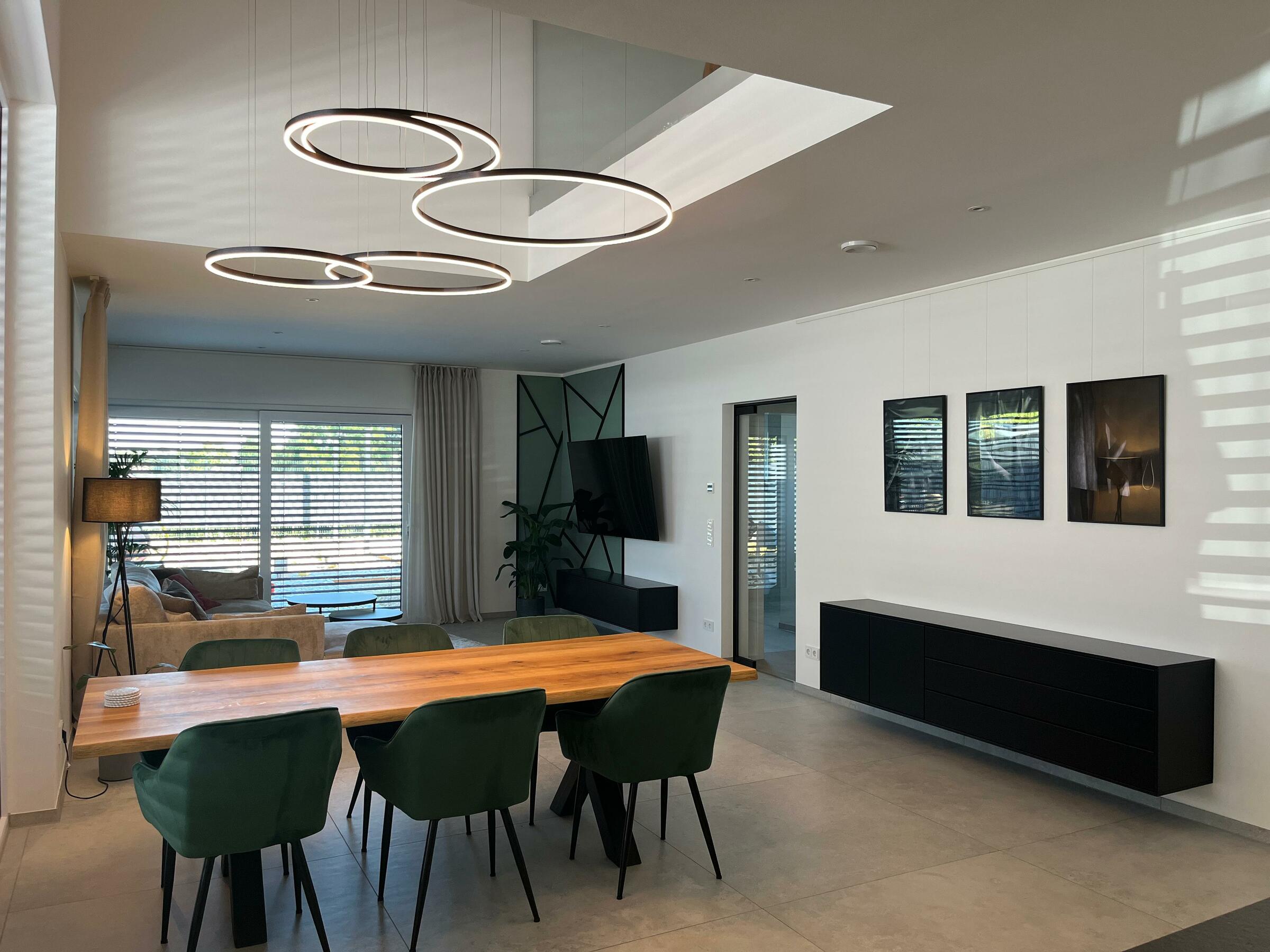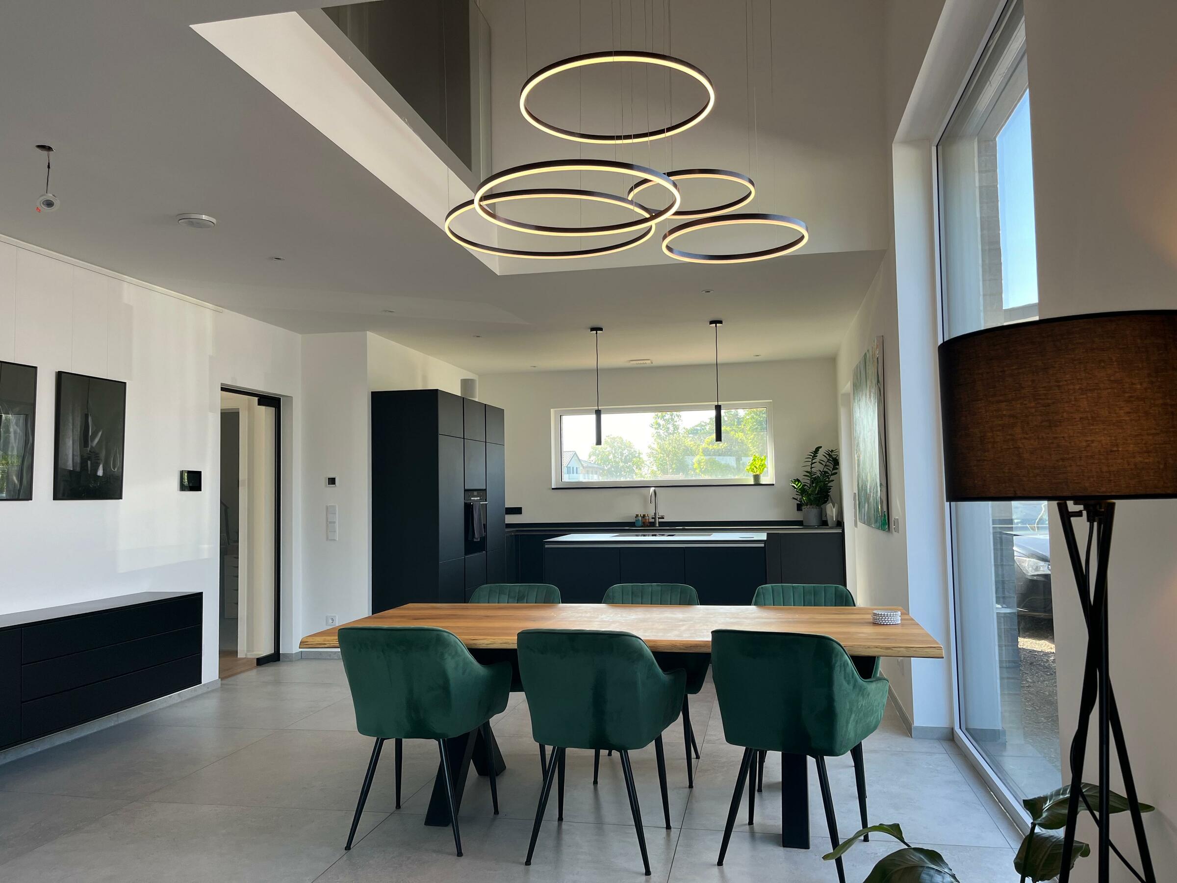 Unser Haus wurde im Jahr 2022 erbaut und befindet sich in einem ruhigen Neubaugebiet an einem Wendehammer. Die Räume des Hauses sind modern und hochwertig möbliert und ausgestattet. Aufgrund der großen und teilweise bodentiefen Fensterflächen fällt viel Tageslicht in die Räume. Alle Fenster im Erdgeschoss können mit Hilfe von Raffstoren abgedunkelt werden. Die Fenster im Obergeschoss sind mit Rollläden ausgestattet. Die moderne Küche verfügt über eine freistehende Kücheninsel. Im Außenbereich kann eine Terrasse und ein Garten für Produktionen genutzt werden. Es stehen 2 private Parkplätze zur Verfügung. Das Haus ist nur ca. 30 Autominuten von Köln entfernt.