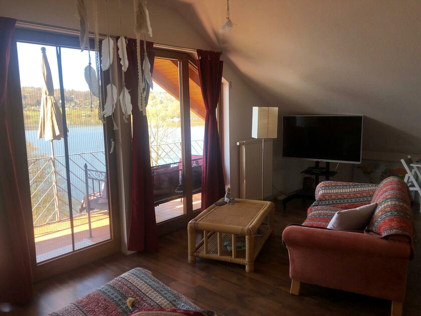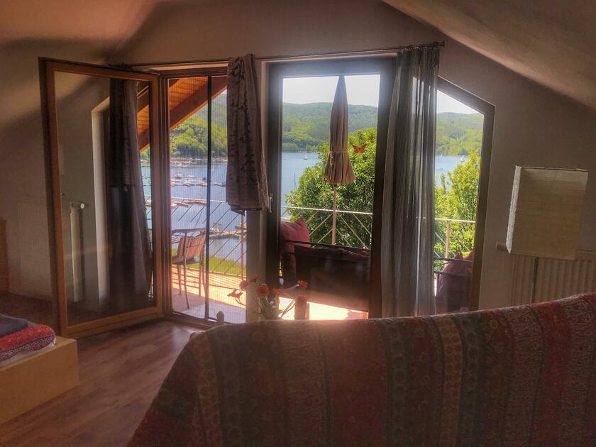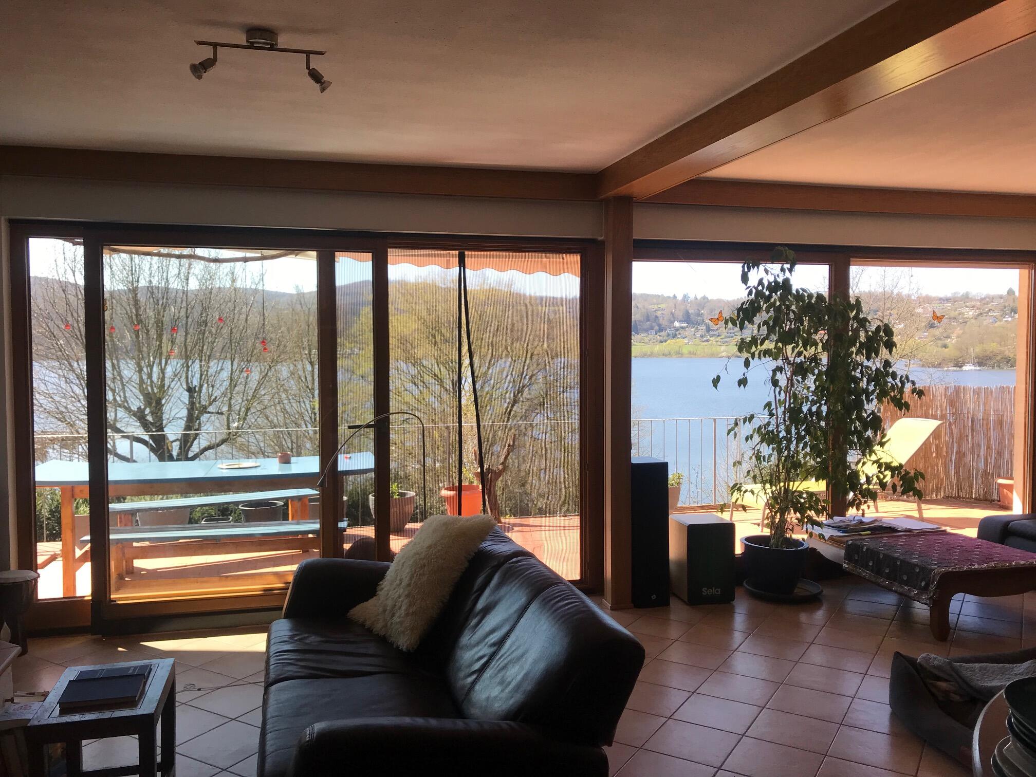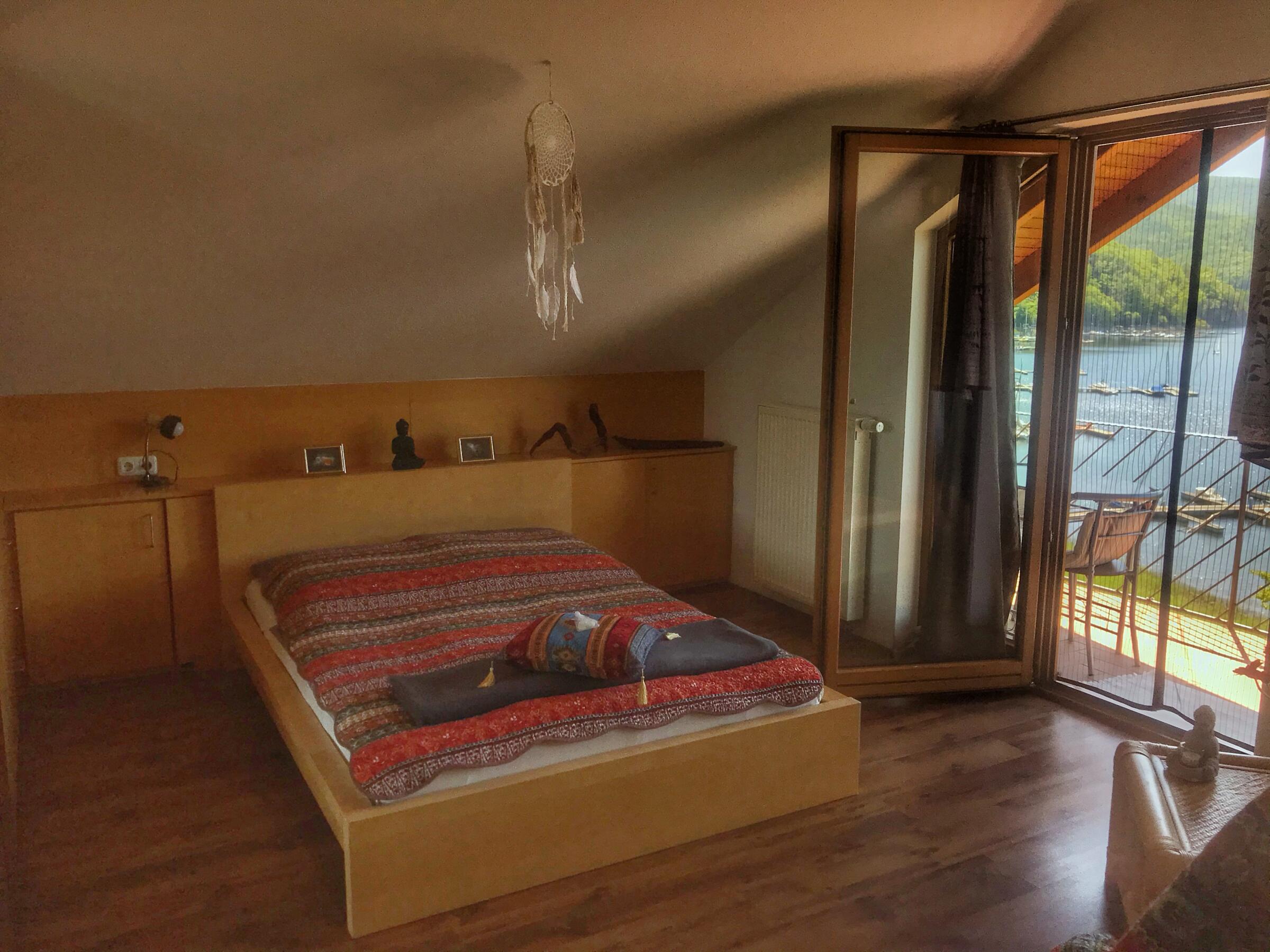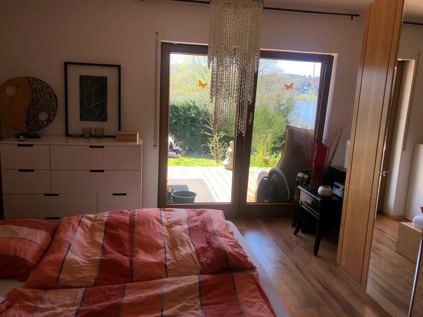 Das Haus befindet sich in direkter Seelage am Edersee mit traumhaften Panoramablick auf den See. In Hanglage, fast am Ende einer Sackgasse und etwas abseits gelegen, wodurch diese Stille hier entsteht. Die riesigen Panoramafenster bieten einen traumhaften Blick auf den See und die Berge. Das Haus ist liebevoll mit viel Kunst und Bildern eingerichtet. Im Wohnzimmer befindet sich ein großer Kamin. Von der umlaufenden, großen Terrasse mit Steinboden und dem großen Balkon vor der Dachwohnung im OG, ist ein malerischer Blick in diese Naturkulisse vorhanden. Das Plätschern des Wassers, Milane und Schwäne am Himmel. Die große Holzterrasse im EG hat einen zauberhaften Blick in den schön bepflanzten Garten. Große Garage, die als Kunstwerkstatt und Atelier genutzt wird. Wäre ein toller Aufenthaltsort fürs Team und die Maske. Grundstück und alle Terrassen nicht einsehbar, hohes Maß an Diskretion möglich. Garten schön angelegt und gepflegt. Alle Räume können genutzt werden für Maske, Aufenthalt und Dreh. Parken auf geradem Untergrund vor dem Haus, direkt am See möglich. Wechselnde Pegelstände, da Stausee, Internet informiert über Wassermenge. Morgens oft Nebelschleier in den Bergen, traumhaft. Der Seeboden blüht und verleiht dem Ort etwas von einem magischen Tal vor der Tür. Der Bootssteg vor der Tür ist ebenfalls nutzbar. Wir haben den zauberhaftesten Flat Retriever der Welt. Er liebt Menschen und hört sehr gut. Falls eine Szene mit einem hübschen Hund gedreht werden soll. Auch eine Massagebank und Klangschalen stehen zur Verfügung. Wichtig ist uns ein respektvoller Umgang mit unserem kleinen Paradies.