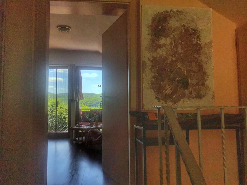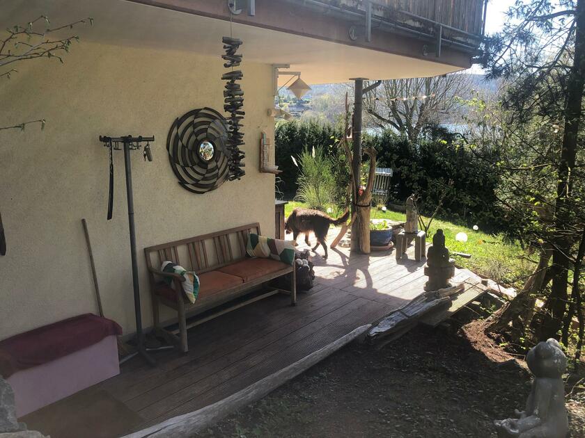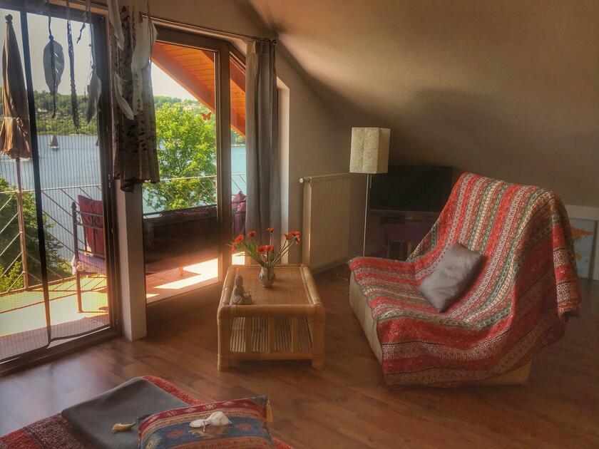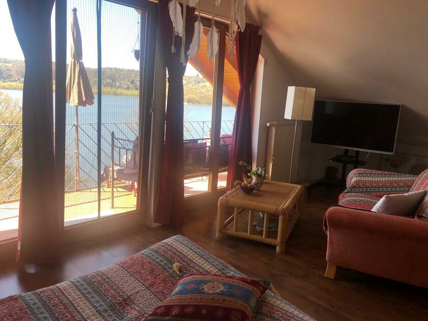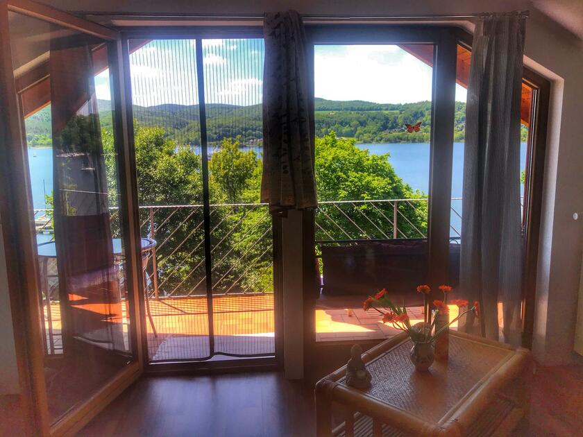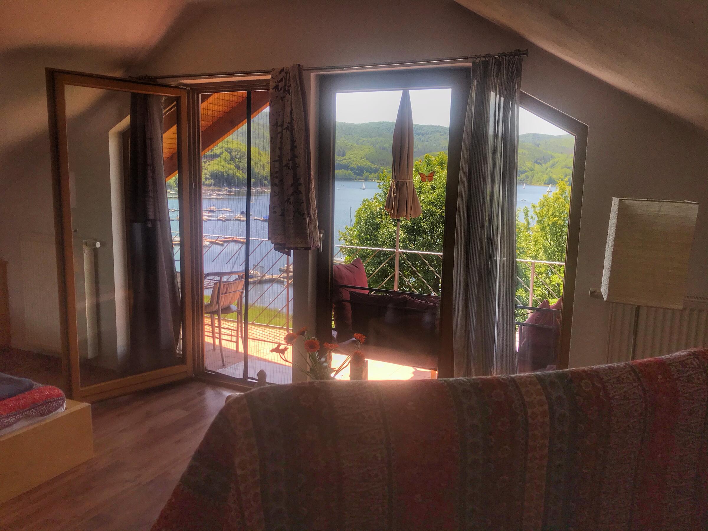 Das Haus befindet sich in direkter Seelage am Edersee mit traumhaften Panoramablick auf den See. In Hanglage, fast am Ende einer Sackgasse und etwas abseits gelegen, wodurch diese Stille hier entsteht. Die riesigen Panoramafenster bieten einen traumhaften Blick auf den See und die Berge. Das Haus ist liebevoll mit viel Kunst und Bildern eingerichtet. Im Wohnzimmer befindet sich ein großer Kamin. Von der umlaufenden, großen Terrasse mit Steinboden und dem großen Balkon vor der Dachwohnung im OG, ist ein malerischer Blick in diese Naturkulisse vorhanden. Das Plätschern des Wassers, Milane und Schwäne am Himmel. Die große Holzterrasse im EG hat einen zauberhaften Blick in den schön bepflanzten Garten. Große Garage, die als Kunstwerkstatt und Atelier genutzt wird. Wäre ein toller Aufenthaltsort fürs Team und die Maske. Grundstück und alle Terrassen nicht einsehbar, hohes Maß an Diskretion möglich. Garten schön angelegt und gepflegt. Alle Räume können genutzt werden für Maske, Aufenthalt und Dreh. Parken auf geradem Untergrund vor dem Haus, direkt am See möglich. Wechselnde Pegelstände, da Stausee, Internet informiert über Wassermenge. Morgens oft Nebelschleier in den Bergen, traumhaft. Der Seeboden blüht und verleiht dem Ort etwas von einem magischen Tal vor der Tür. Der Bootssteg vor der Tür ist ebenfalls nutzbar. Wir haben den zauberhaftesten Flat Retriever der Welt. Er liebt Menschen und hört sehr gut. Falls eine Szene mit einem hübschen Hund gedreht werden soll. Auch eine Massagebank und Klangschalen stehen zur Verfügung. Wichtig ist uns ein respektvoller Umgang mit unserem kleinen Paradies.