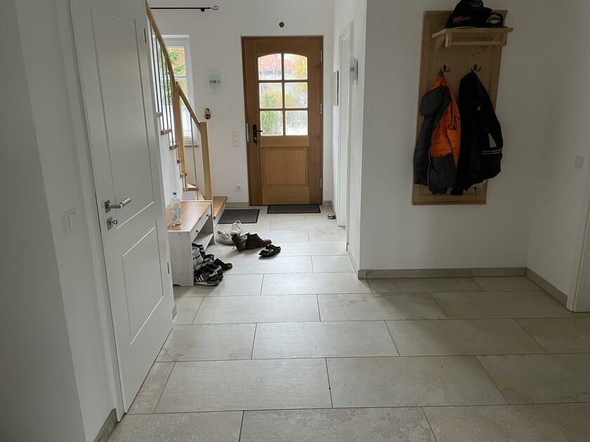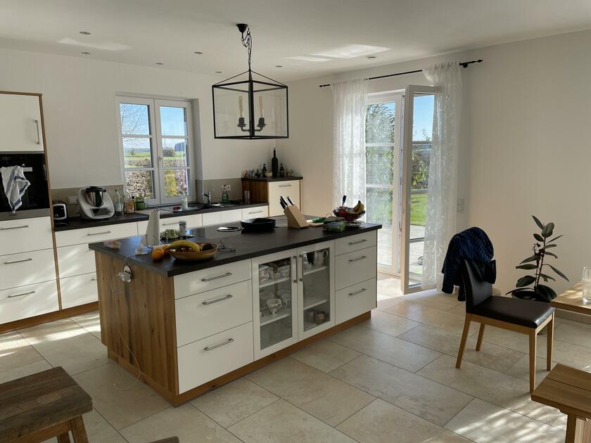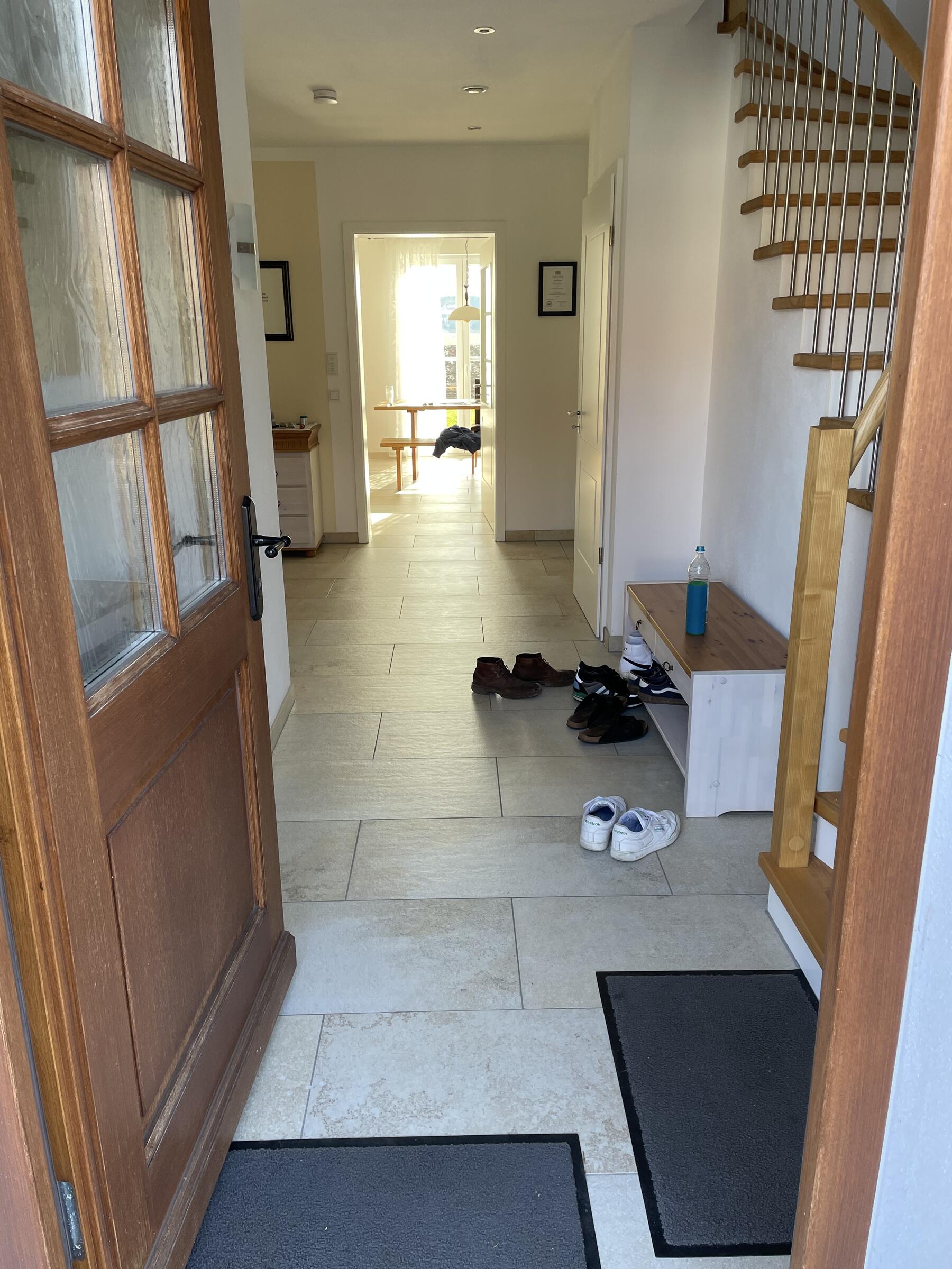 Mein Haus wurde 2016 erbaut und befindet sich auf einem ca. 1000 m² großen Grundstück und verfügt über eine 54 m² große Südterasse. Es ist verkehrsgünstig an der A8 gelegen und hat einen nahegelegenen S-Bahnanschluss. Das Haus liegt verkehrsberuhigt in einer ruhigen Nebenstraße, wo sich auch viele Park- und Wendemöglichkeiten bieten. Der Hobbyraum im Keller ist fast leer.