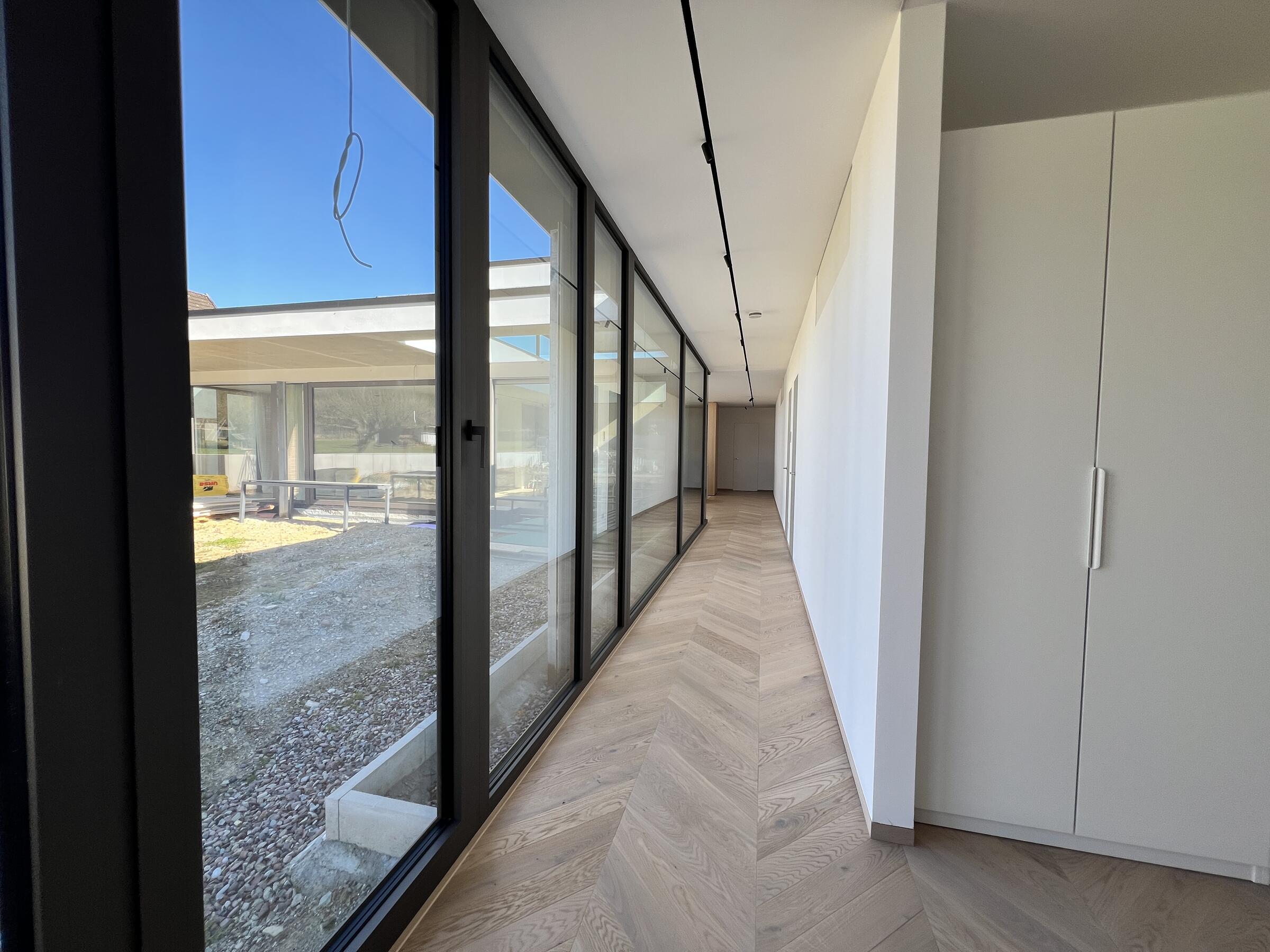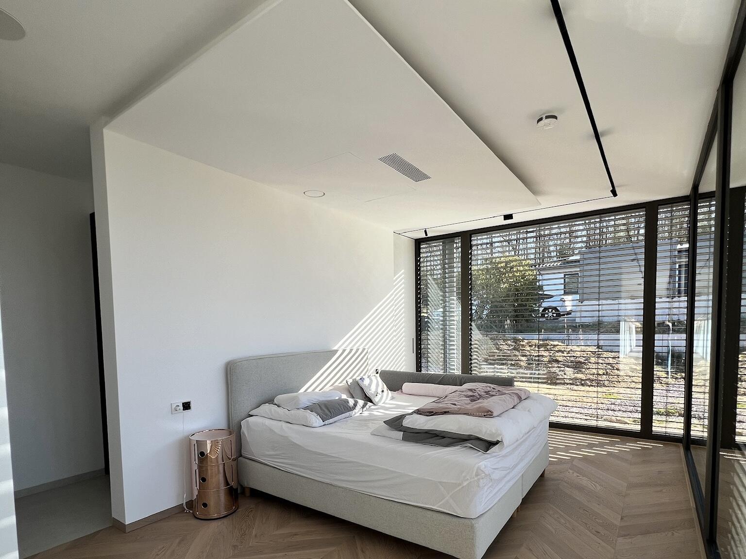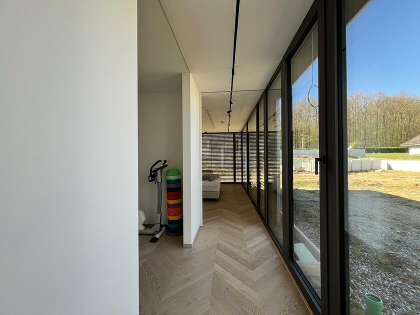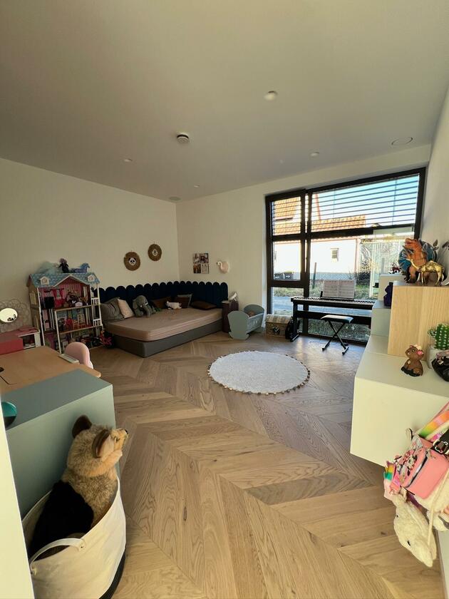 Der außergewöhnliche Neubaubungalow befindet sich inmitten einer Waldlandschaft am Rande des Deisters. Der nach Süden ausgerichtete Bungalow vereint moderne Architektur mit nachhaltiger Bauweise. Die Räume sind offen gestaltet und modern eingerichtet. Die großen, bodentiefen Fensterfronten und die Oberlichter im Wohn- und Essbereich lassen viel Tageslicht in die Räume und können mit Hilfe von Jalousien und Rollos verdunkelt werden. Auf den Böden der Wohnräume ist hochwertiges Parkett verlegt. Parkplätze und Stellflächen befinden sich vor unserem Grundstück. Das Haus befindet sich in einer ruhigen Wohngegend.