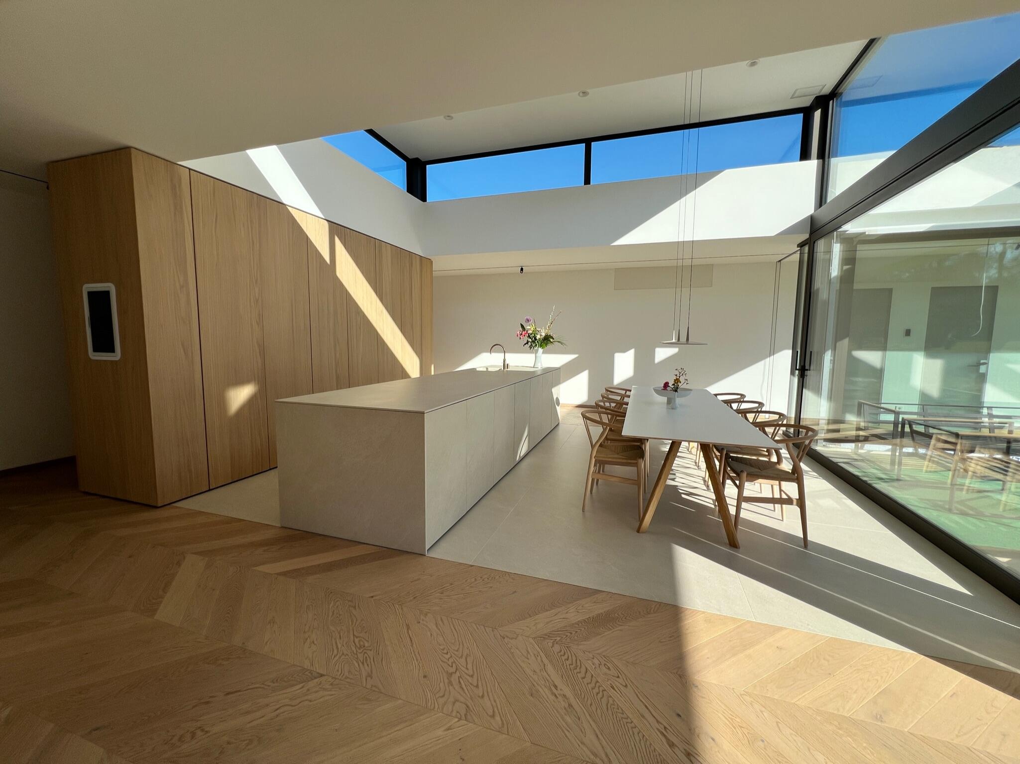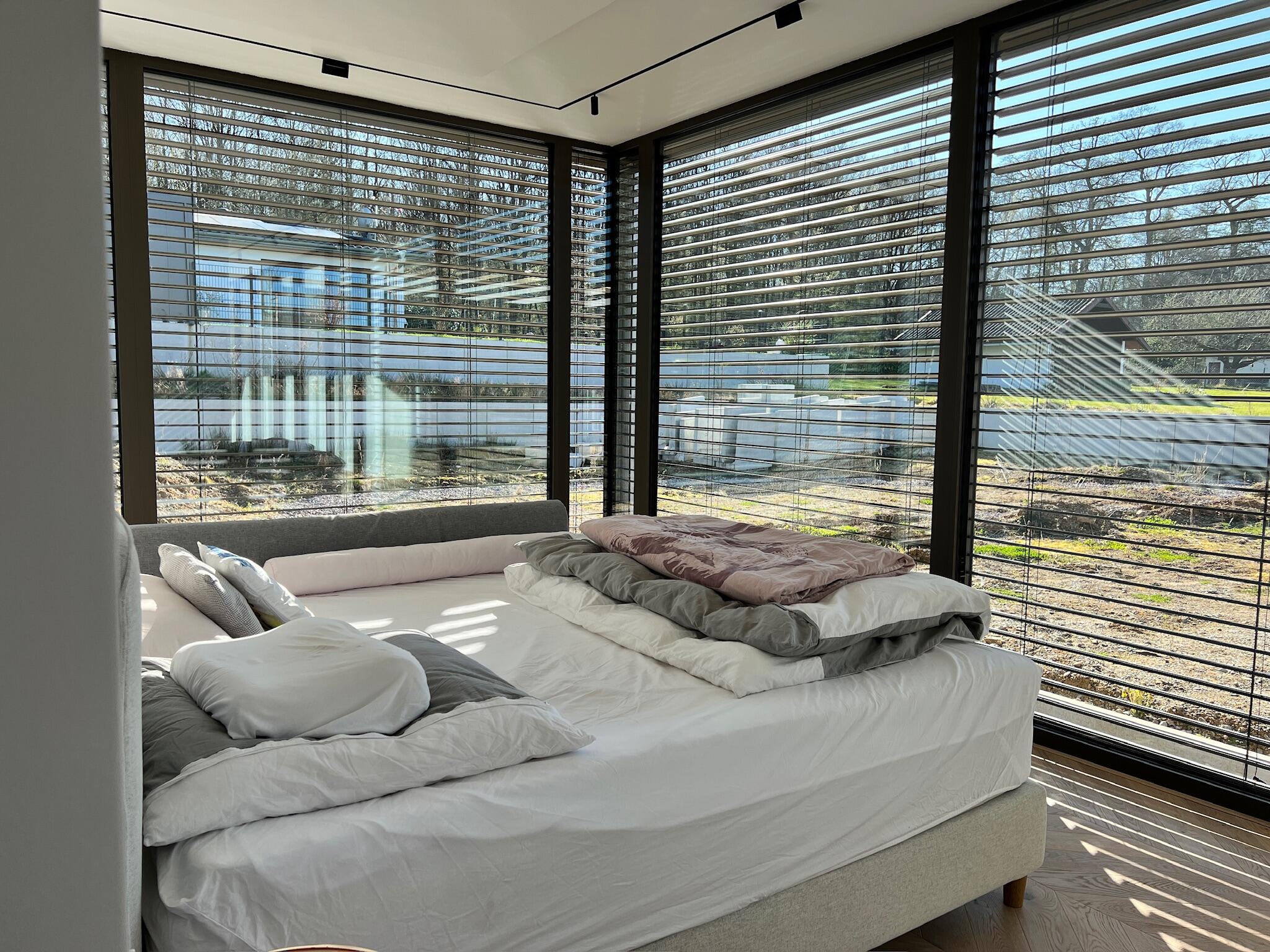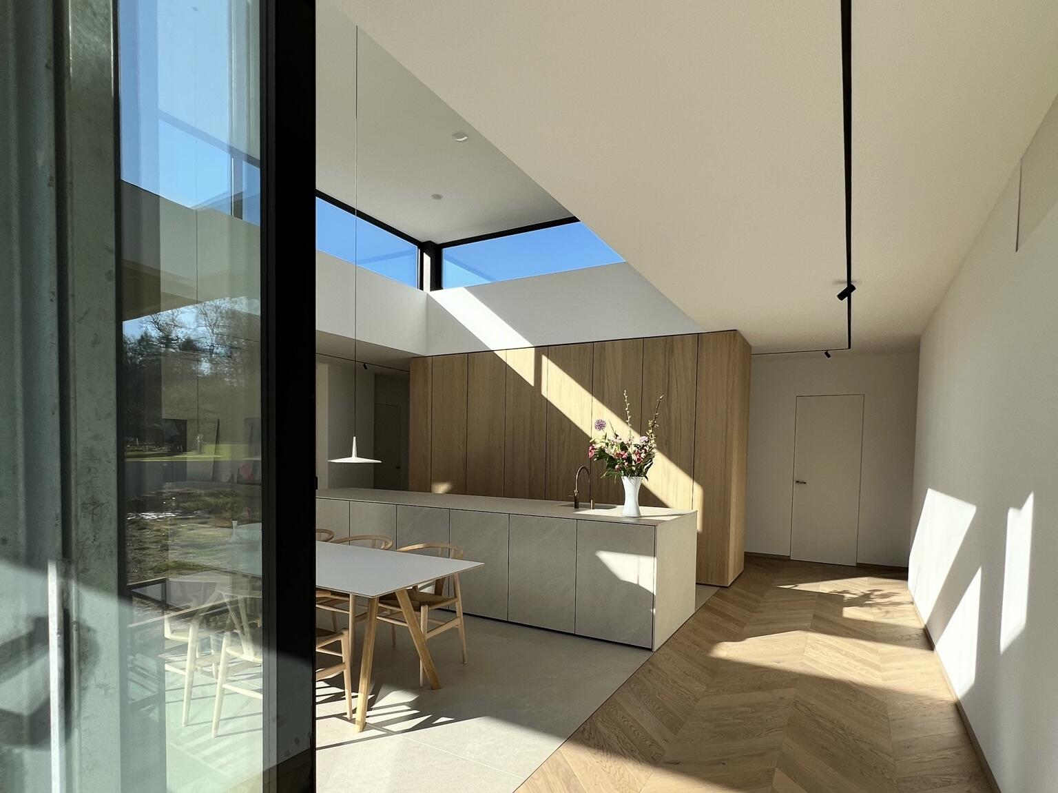 Der außergewöhnliche Neubaubungalow befindet sich inmitten einer Waldlandschaft am Rande des Deisters. Der nach Süden ausgerichtete Bungalow vereint moderne Architektur mit nachhaltiger Bauweise. Die Räume sind offen gestaltet und modern eingerichtet. Die großen, bodentiefen Fensterfronten und die Oberlichter im Wohn- und Essbereich lassen viel Tageslicht in die Räume und können mit Hilfe von Jalousien und Rollos verdunkelt werden. Auf den Böden der Wohnräume ist hochwertiges Parkett verlegt. Parkplätze und Stellflächen befinden sich vor unserem Grundstück. Das Haus befindet sich in einer ruhigen Wohngegend.