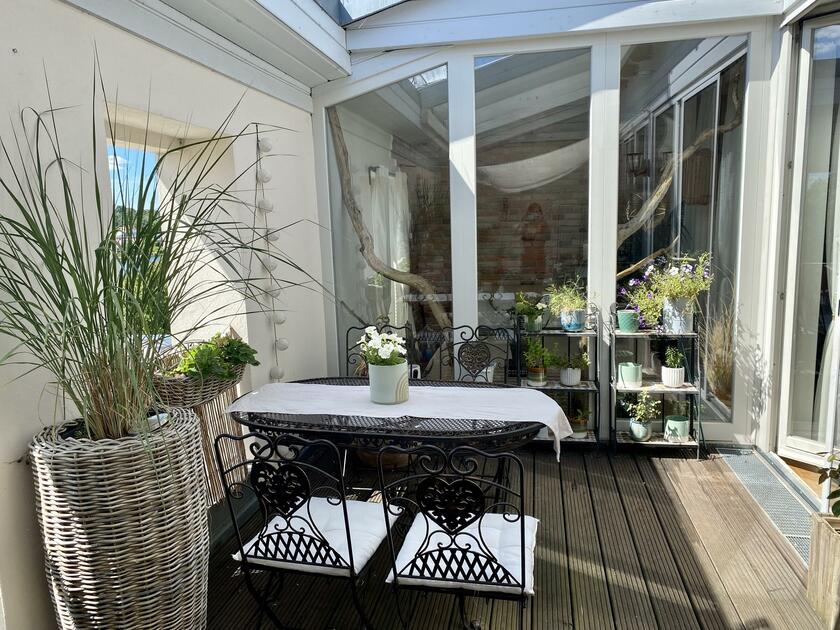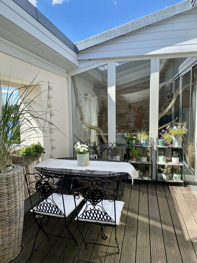 Die Wohnung befindet sich in der ehemaligen Saftfabrik in Werder, direkt auf der Insel am Markt mit Blick auf die Havel. Die helle, 144 m² große und lichtdurchflutete Wohnung ist im Industrial/Boho Stil eingerichtet. Aufgrund der bodentiefen Fenster gelangt viel Sonnenlicht in die Räume. Der Fußboden besteht aus Eichenparkett und an den Wänden ist Mauerstein-Imitat aus Styropor angebracht. Zur Wohnung gehört ebenfalls eine 20 m² große Dachterrasse, die einen Blick auf atemberaubend schöne Sonnenuntergänge bietet. Nutzen Sie die einmalig eingerichtete Wohnung für perfekte Settings Ihrer Film- oder Fotoproduktion.
