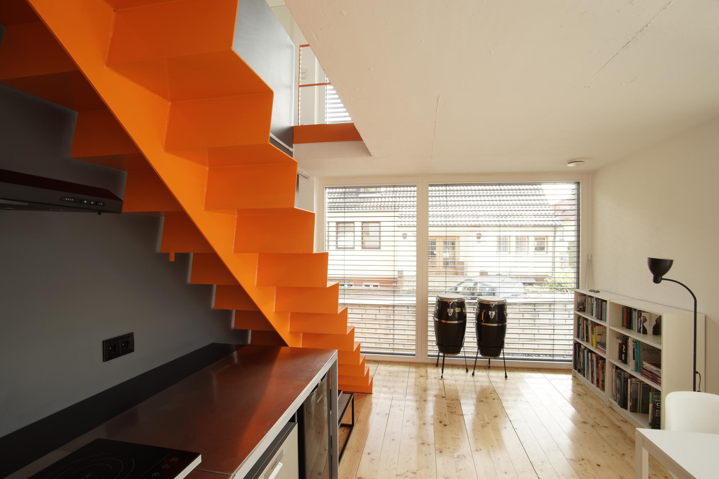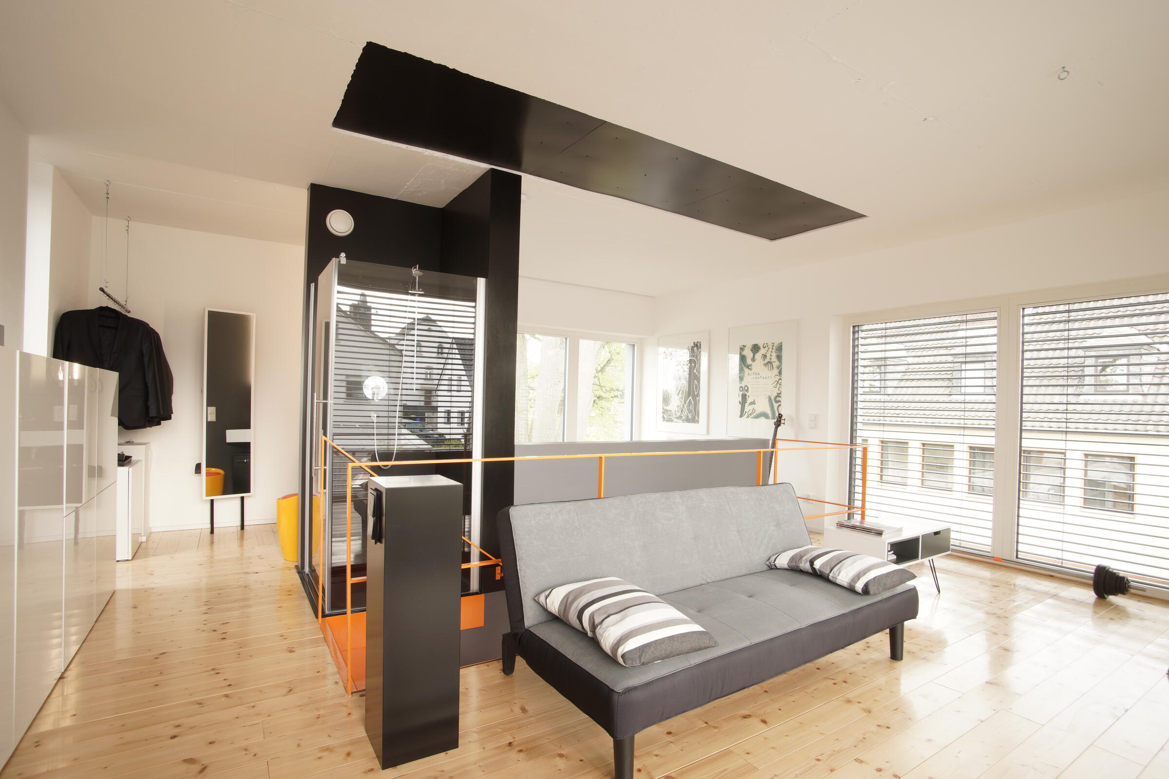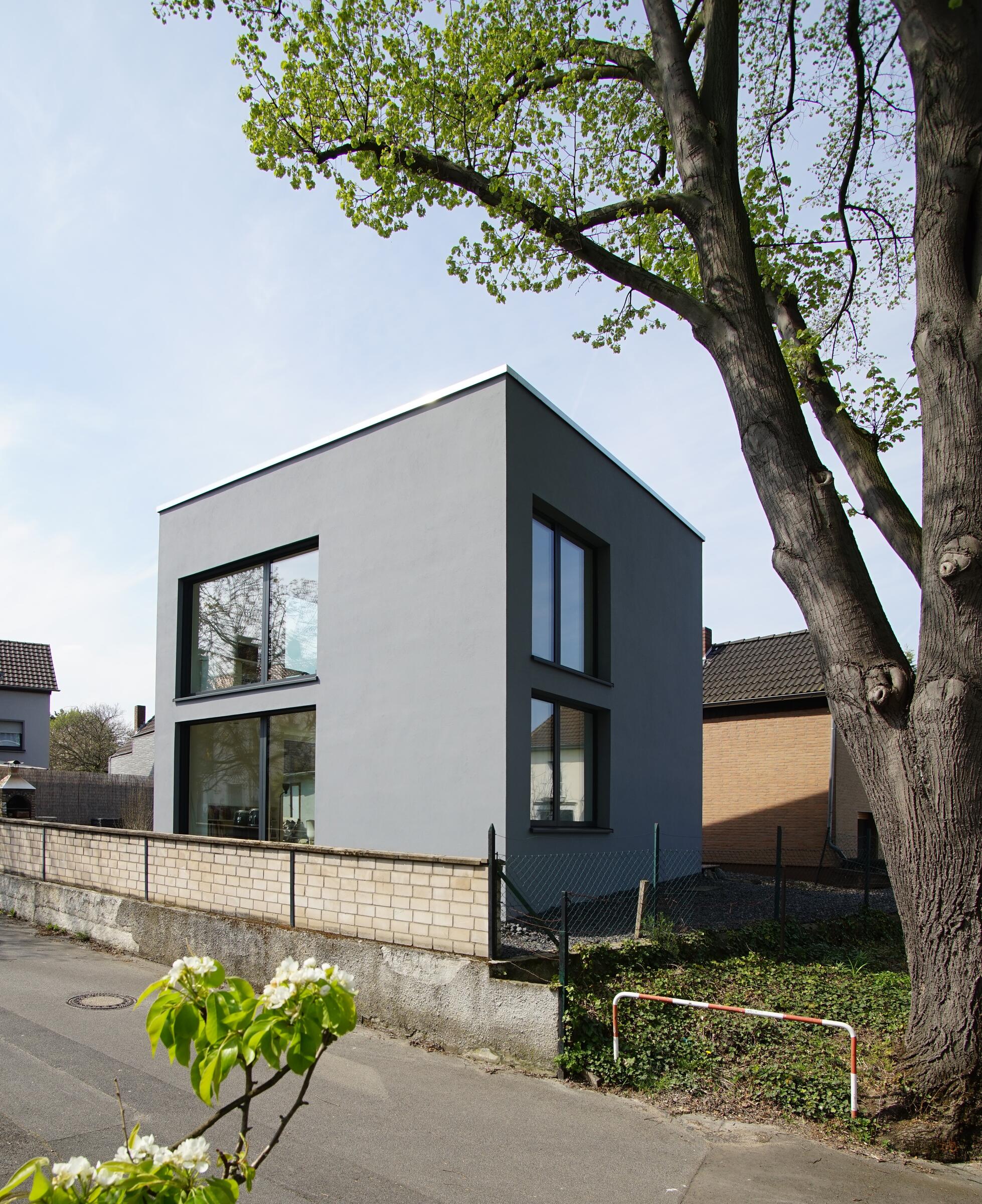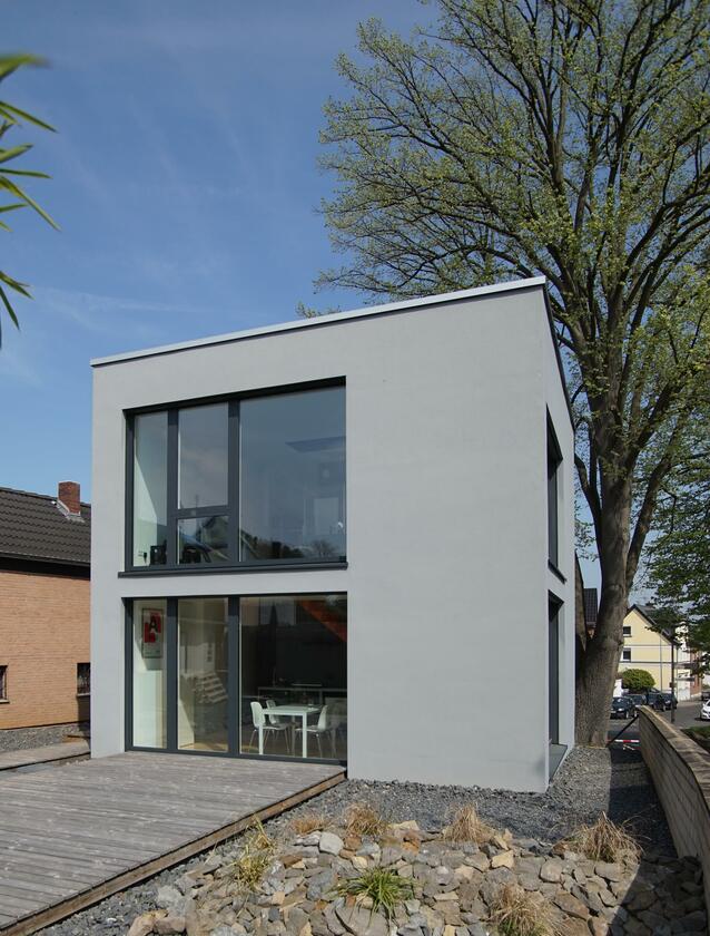 Miniwürfel - ein experimentelles, kleines, massives Wohnhaus in einem kleinen Ort an der Stadtgrenze zu Köln. Das Haus wurde im Jahr 2018 erbaut und ist freistehend. Das Grundstück ist klein, hat jedoch eine sehr große Holzterrasse, die der Grundfläche des Hauses entspricht. Es gibt noch ein kleines, sicheres Nebengebäude zum Einlagern von Gegenständen. Da es sich um ein Passivhaus handelt, verfügt das Gebäude über eine Lüftungsanlage. Parken ist hier kein Problem, es gibt unmittelbar um das Gebäude herum sehr viele Parkplätze. Insgesamt ein sehr ruhiger mit wenig Publikumsverkehr.