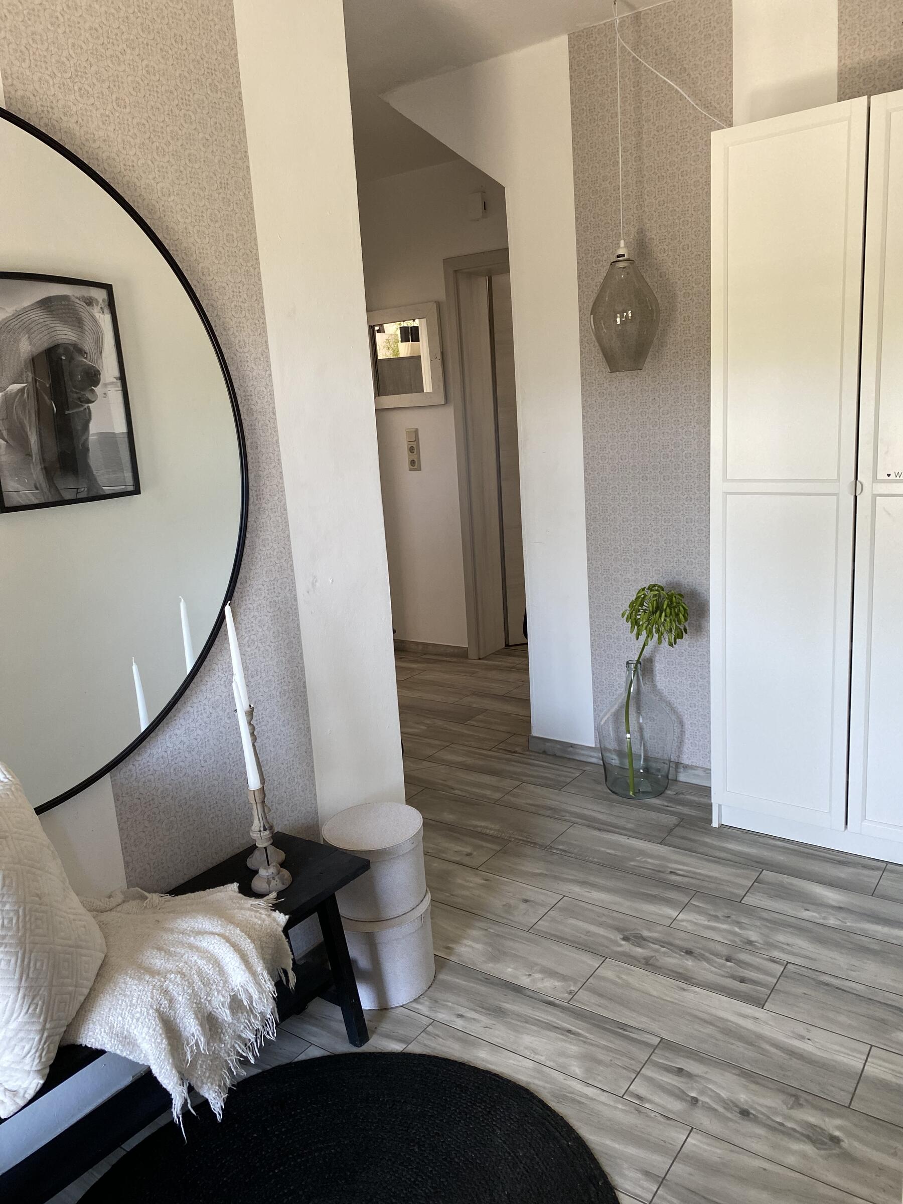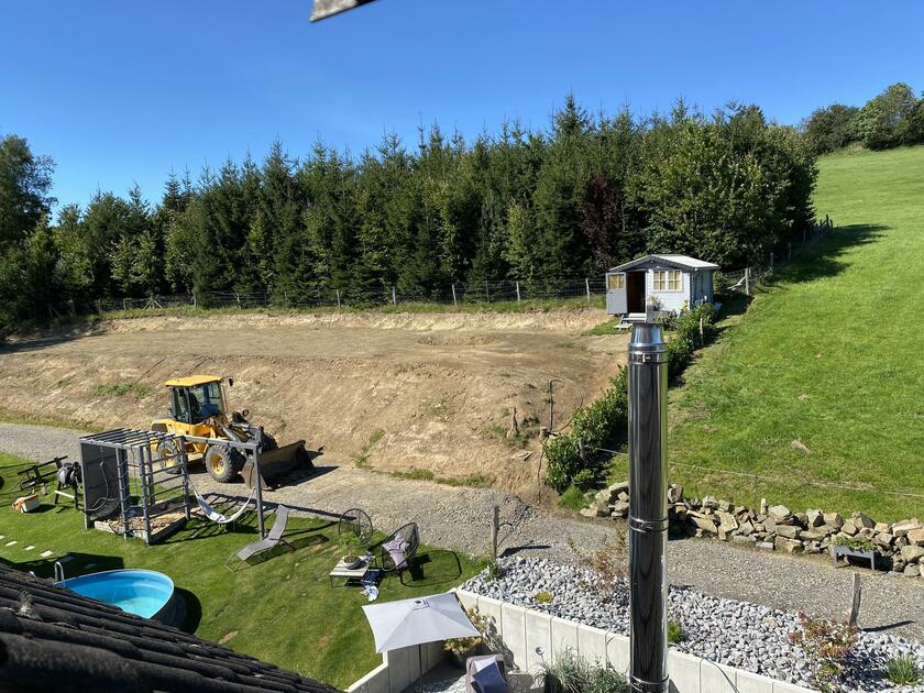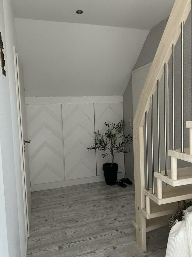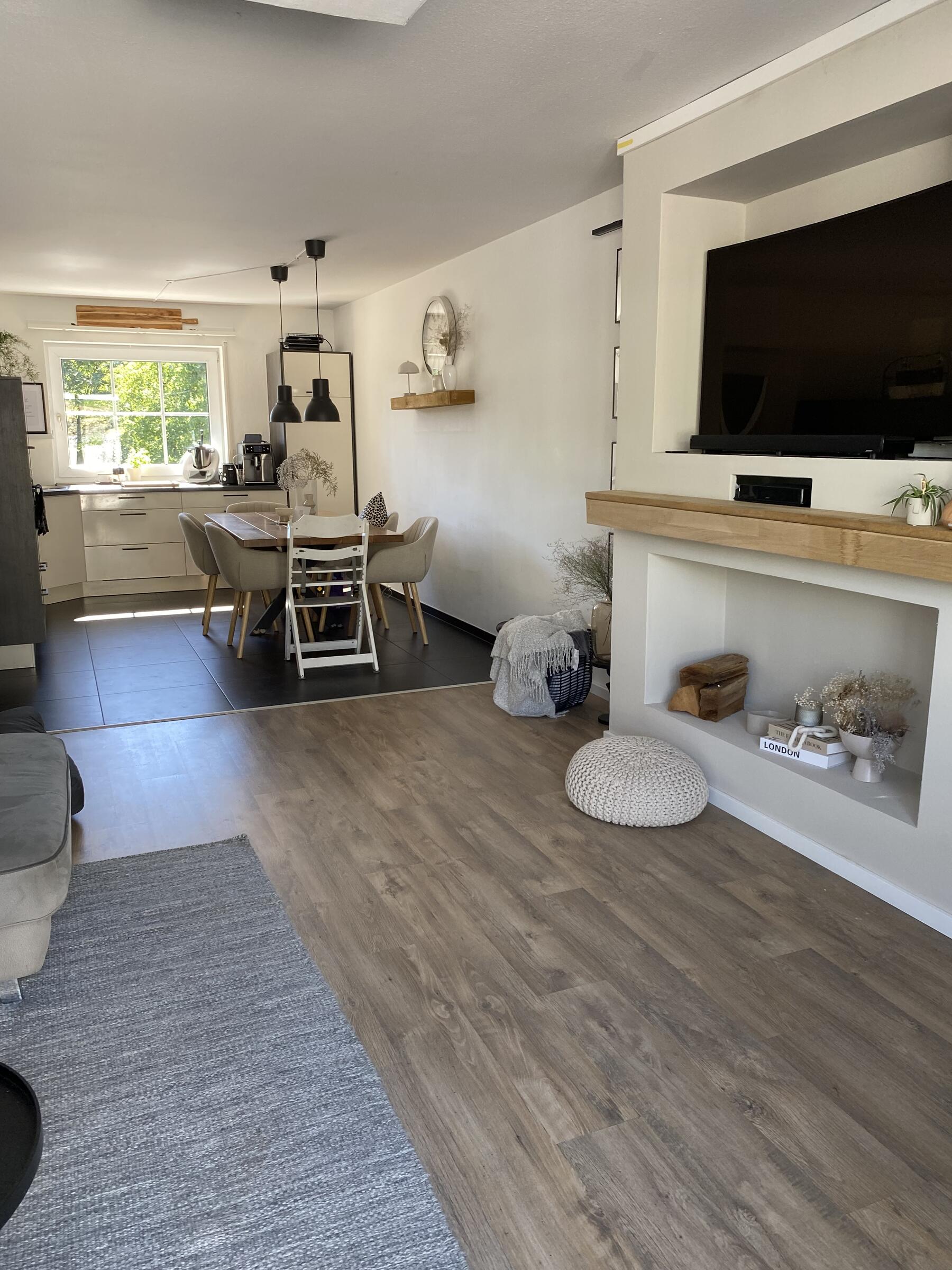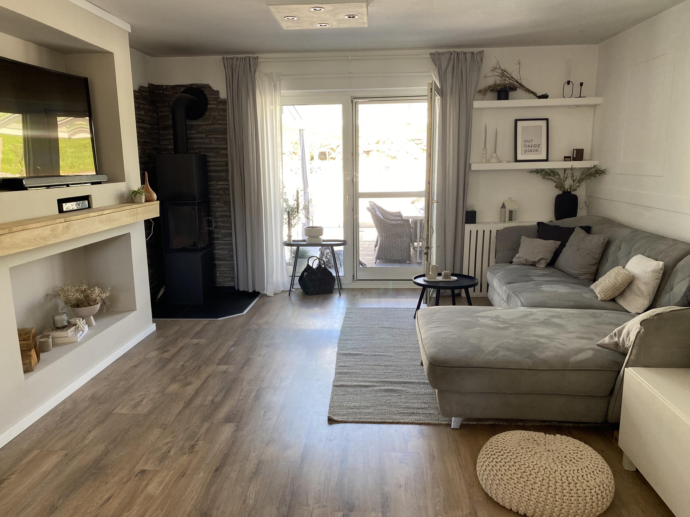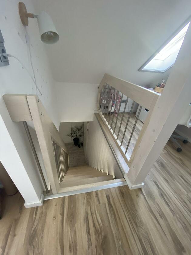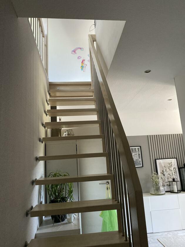 Mein Haus befindet sich mitten im bergischen Land zwischen Wiesen und Wäldern aber direkt an der Bundesstraße. Es teilt sich in 2 Etagen und einem Dachgeschoss auf. In der 1. Etage befindet sich die offene Wohnküche mit Kamin und moderner Einrichtung und vielen DIY Projekten. Angrenzend das Schlafzimmer sowie das kleine Bad mit Dusche und der Eingangsbereich. Durch das Treppenhaus gelangt man in die 2. Etage, wo sich eine Diele mit offener Treppe zum ausgebauten Dachgeschoss befindet. Hier befindet sich auch das große Bad mit freistehender Wanne. Die Terrasse wurde erneuert und im modernen Stil gestaltet, sie ist teilweise überdacht. Daran angrenzend befindet sich eine ca. 1.000 m² große Freifläche.