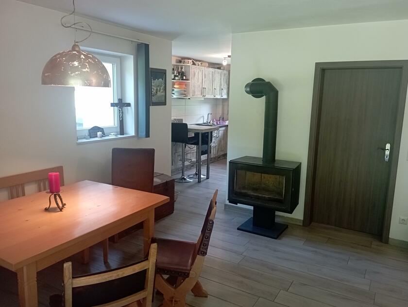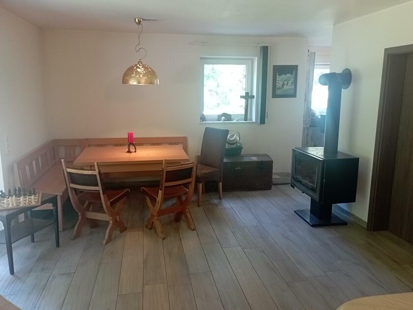 Die Doppelhaushälfte befindet sich in Waldnähe, angrenzend an Felder und Wiesen. Die Lichtverhältnisse in den Räumen sind eher dunkel. Es gibt im Haus eine Einbauküche, moderne Fliesenböden, einen Schwedenofen und weiße Wände. Die Einrichtung bewegt sich zwischen modern und rustikal. Deckenhöhen der Räume sind von ca. 1,65 m bis ca. 3,85 m. Das erste Obergeschoss liegt unter dem Dachstuhl. Die Treppe zum Obergeschoss ist gewendelt und aus Kunstmarmor. Räume für Teamaufenthalt, Maske und Garderobe nach Absprache. Private Parkplätze stehen zu Verfügung. Das Haus befindet sich ca. 3 km von der A94 entfernt.