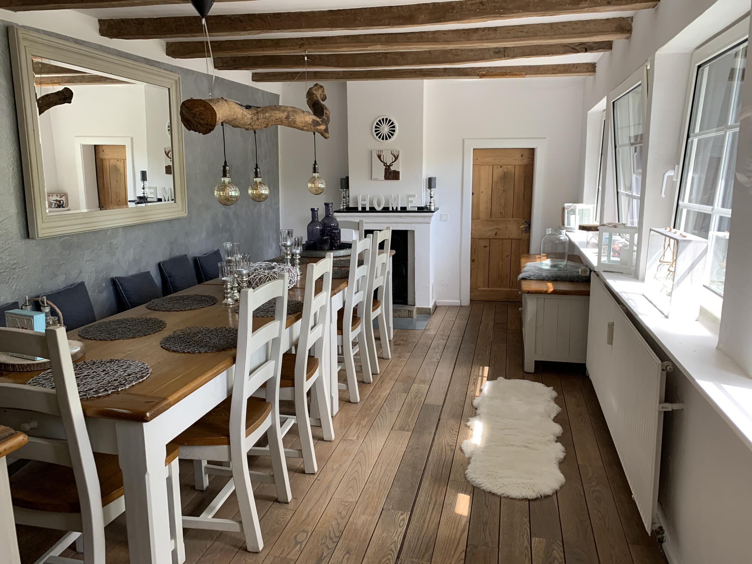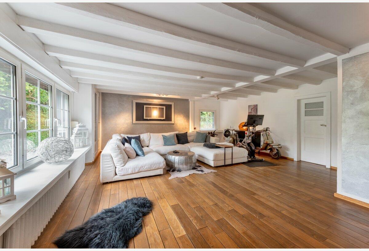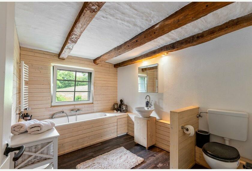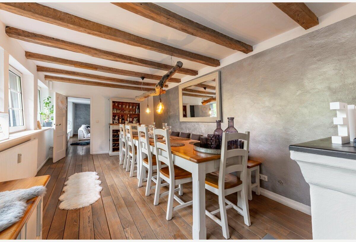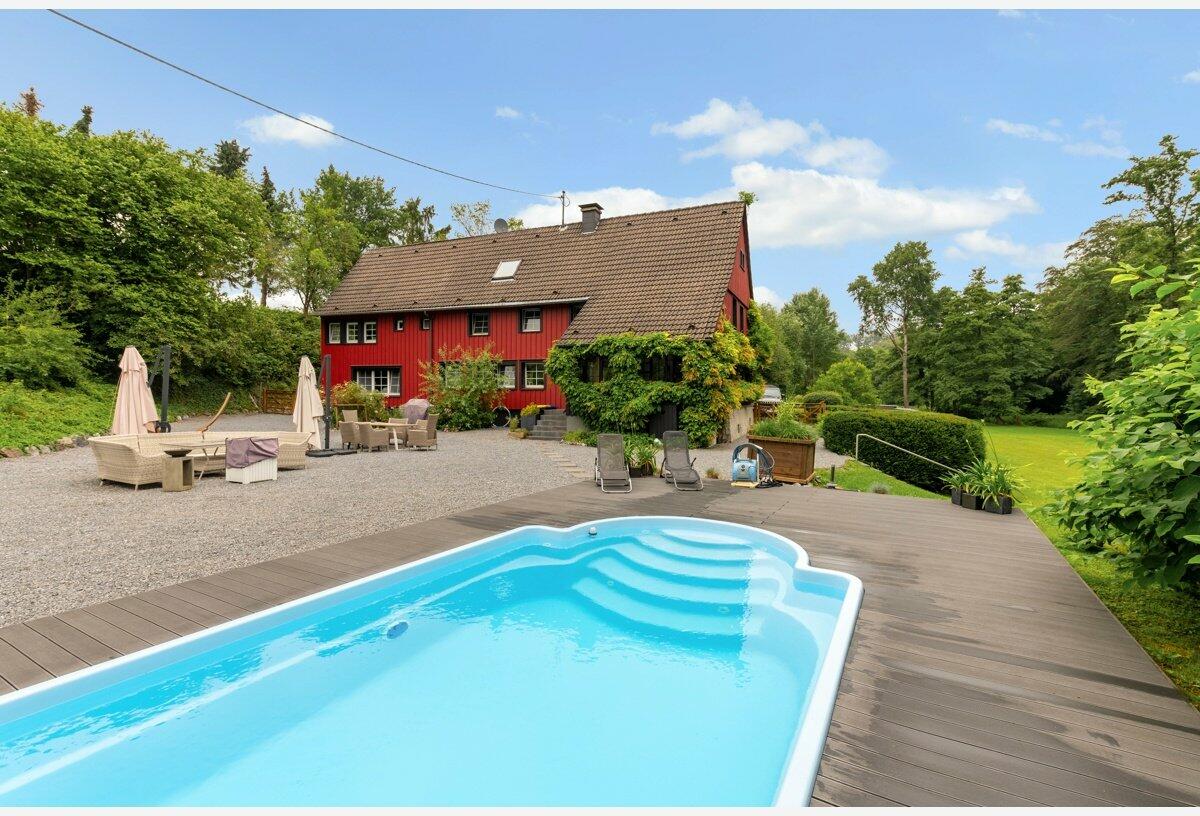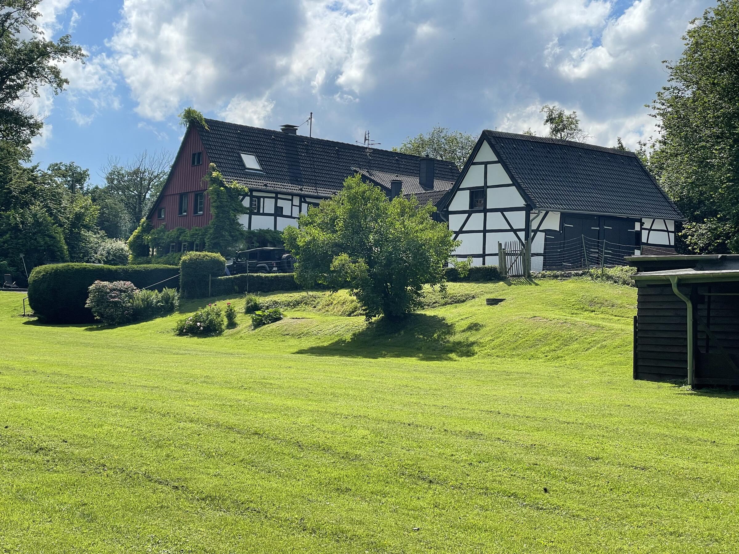 Das großzügige idyllische Grundstück mit Bachlauf ist bebaut mit einer Fachwerkanlage bestehend aus einem Wohnhaus und einer Fachwerkscheune. Das Landhaus aus dem Jahre 1640 hat ca. 350 m² Wohnfläche und befindet sich in einzigartiger Lage in der Nähe des historischen Dorfes Düssel (Wülfrath). Die letzte umfangreiche Renovierung fand im Jahr 2013 statt, so dass es den heutigen Vorstellungen vom zeitgemäßen Wohnen entspricht und geschmackvoll eingerichtet und dekoriert ist.