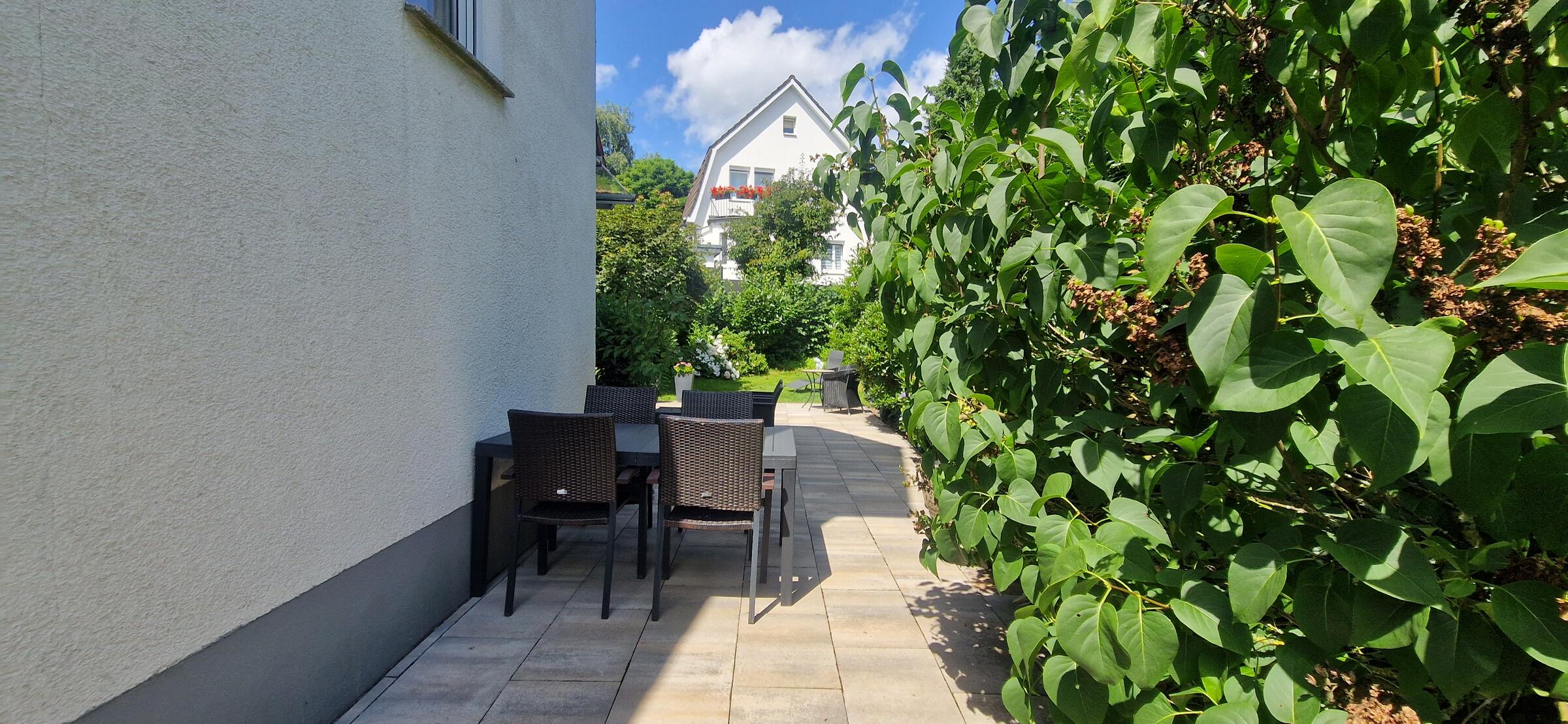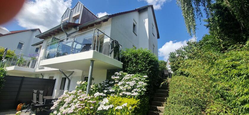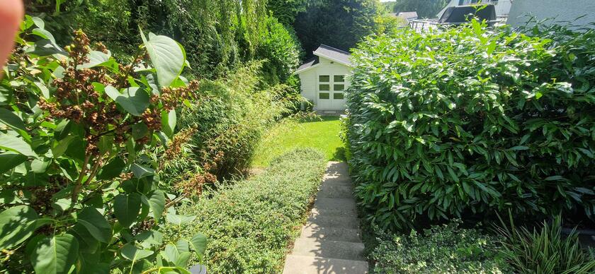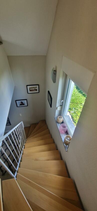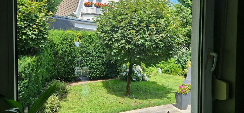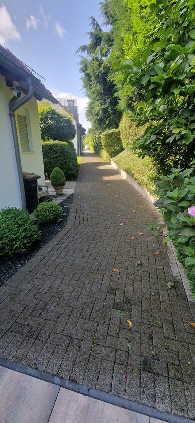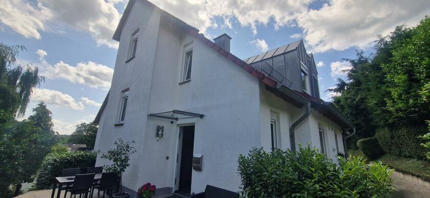 Unsere Doppelhaushälfte befindet sich im Wuppertaler Wohnquartier Lichtenplatz, am Ende eines Privatweges. Die Räume sind zeitgemäß und funktional eingerichtet. Durch die großen und teilweise bodentiefen Fenster fällt Tageslicht in die Räume. Die Fenster der Wohnbereiche sind mit Hilfe von Außenjalousien abdunkelbar. Das Haus ist vollständig von Grünbereichen und Hecken umgeben. Das Grundstück ist von außen weitestgehend uneinsehbar. Die Einfahrt, der zum Haus gehörenden Garage, befindet sich an der vorbeiführenden Anliegerstraße auf der es ebenfalls Pkw-Parkplätze gibt.