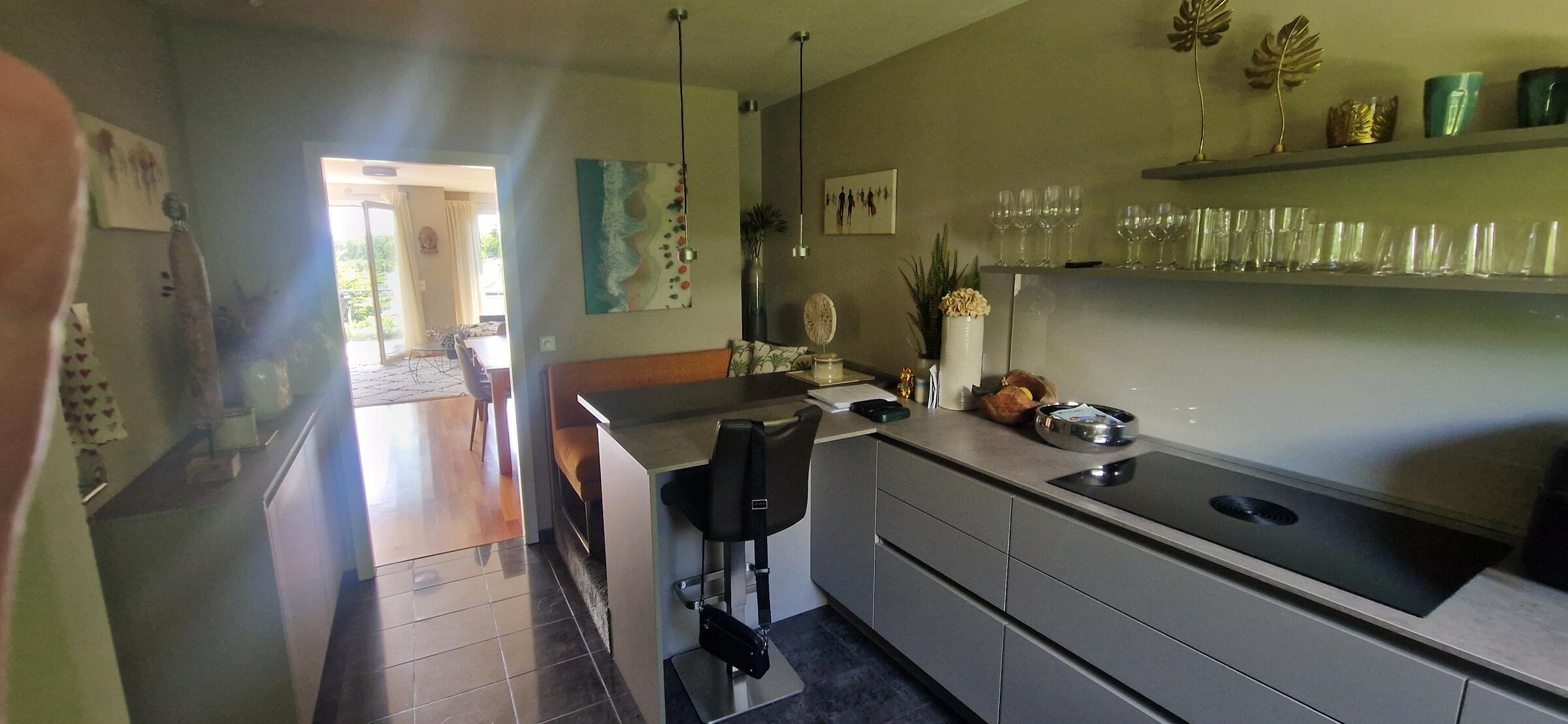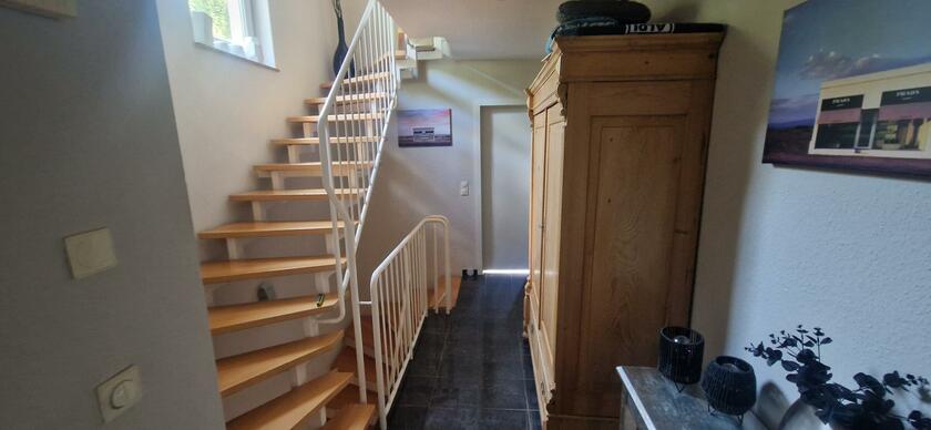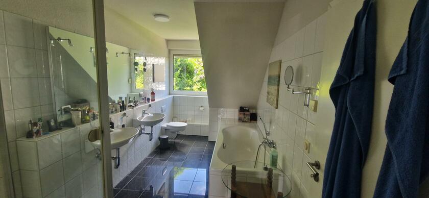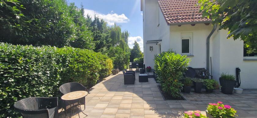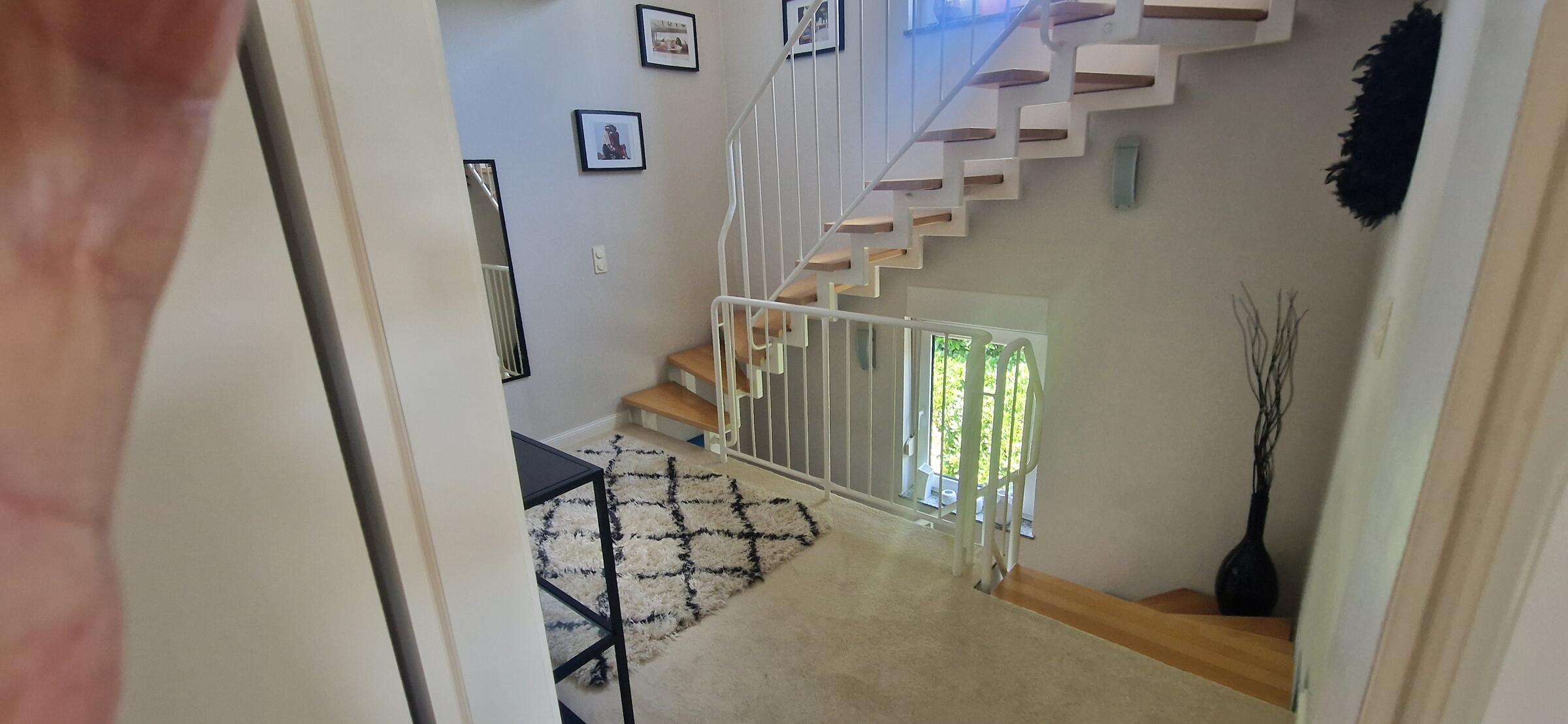 Unsere Doppelhaushälfte befindet sich im Wuppertaler Wohnquartier Lichtenplatz, am Ende eines Privatweges. Die Räume sind zeitgemäß und funktional eingerichtet. Durch die großen und teilweise bodentiefen Fenster fällt Tageslicht in die Räume. Die Fenster der Wohnbereiche sind mit Hilfe von Außenjalousien abdunkelbar. Das Haus ist vollständig von Grünbereichen und Hecken umgeben. Das Grundstück ist von außen weitestgehend uneinsehbar. Die Einfahrt, der zum Haus gehörenden Garage, befindet sich an der vorbeiführenden Anliegerstraße auf der es ebenfalls Pkw-Parkplätze gibt.
