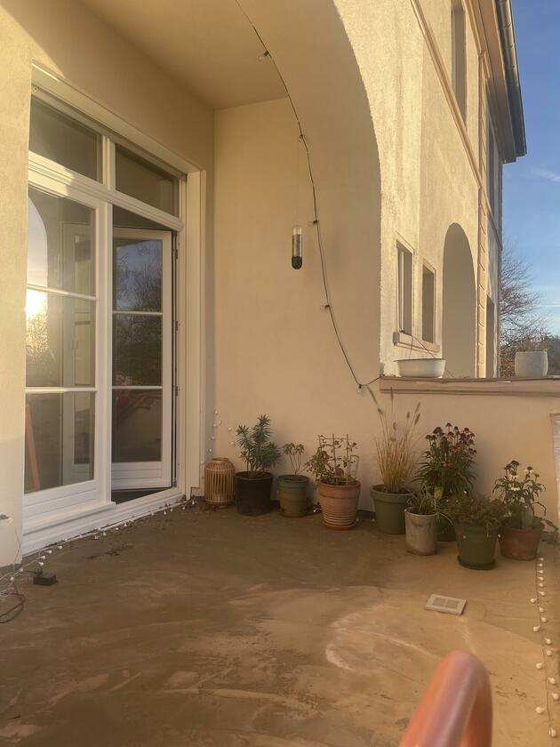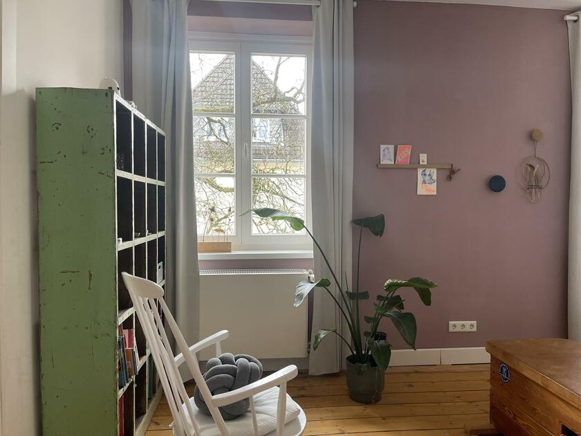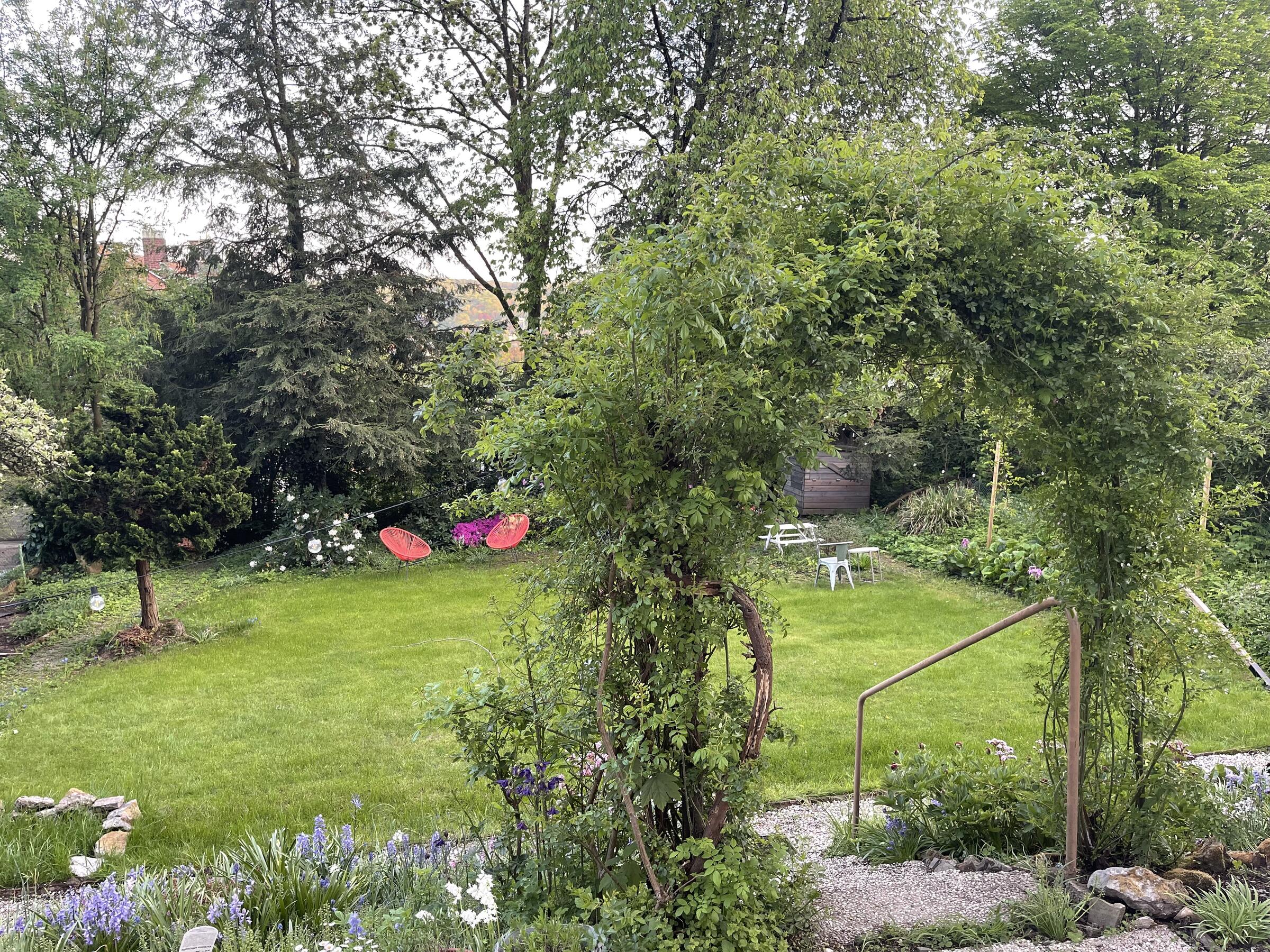 Unser denkmalgeschütztes Haus befindet sich in der Nähe des Nordpark in Wuppertal. Wir haben das Haus im Jahr 2024 vollständig saniert und renoviert. Im Erdgeschoss bietet unser Haus eine offen gestaltete Wohnküche mit einem großen Essbereich. Das gemütliche Wohnzimmer ist hier durch eine Schiebetür vom Essbereich getrennt. Die Räume sind hell und freundlich gestaltet. Es fällt viel Sonnenlicht in die Räume. Die Fenster können teilweise mit Vorhängen verdunkelt werden. Auf den Böden sind hochwertige Dielen und Laminat verlegt. Im Außenbereich steht unser großer und gepflegter Garten zur Verfügung. Parkplätze gibt es direkt vor dem Haus.