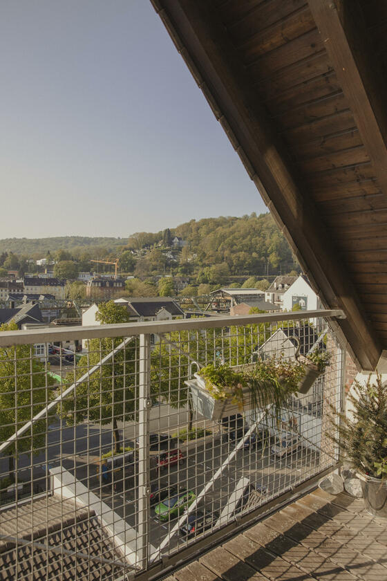 Die große Fensterfront mit dem Balkon ist nach Süden gelegen, hier scheint die Sonne von Sonnenaufgang bis Nachmittags direkt hinein. Die Fenster im Bad und im Küchen- und Schlafbereich sind in Richtung Westen. Ein Personenaufzug ist vorhanden, somit auch ein barrierefreier Zugang (ausgenommen der Schlafebene).